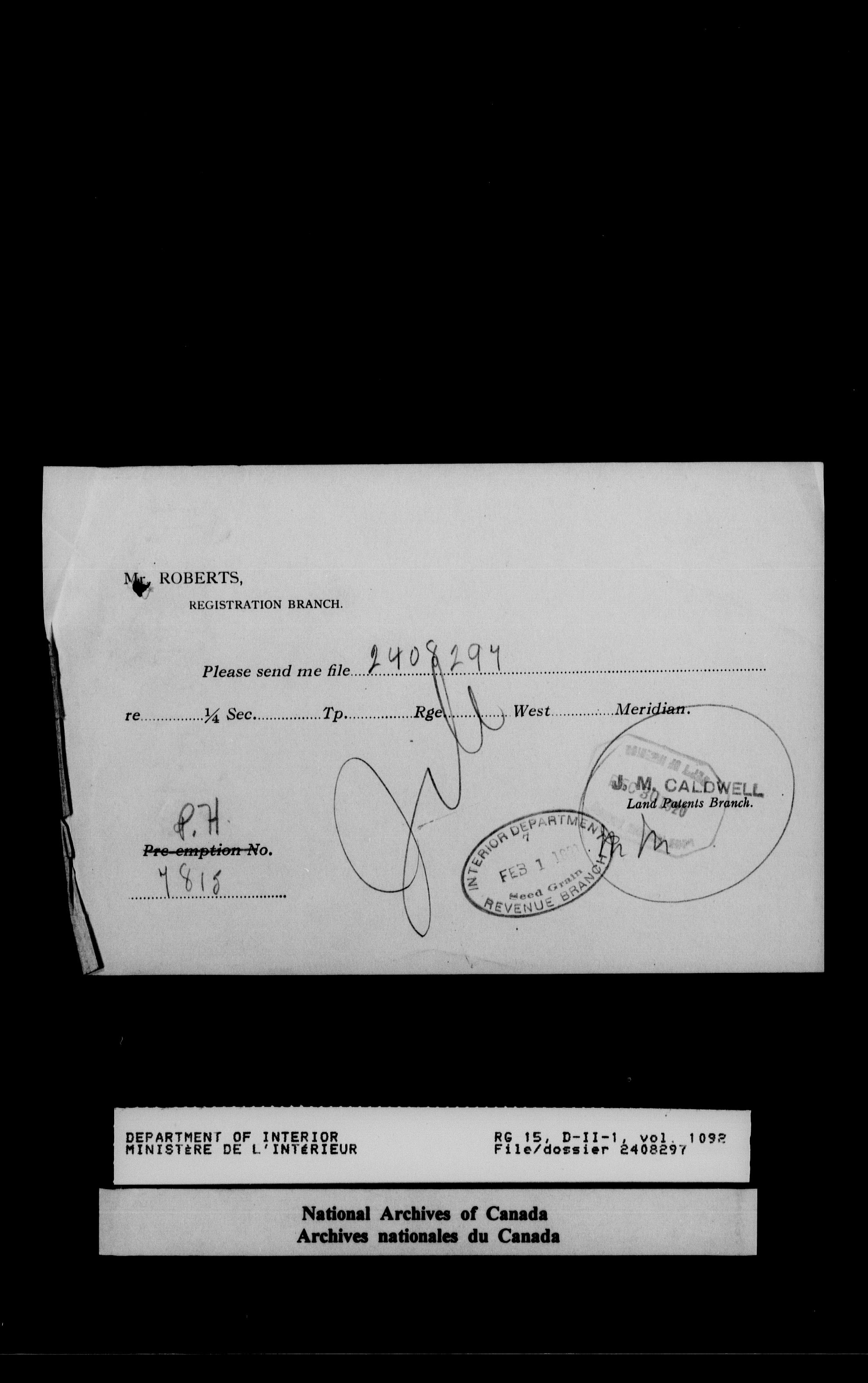 Central registry subject files created by the Dominion Lands Branch - 14656