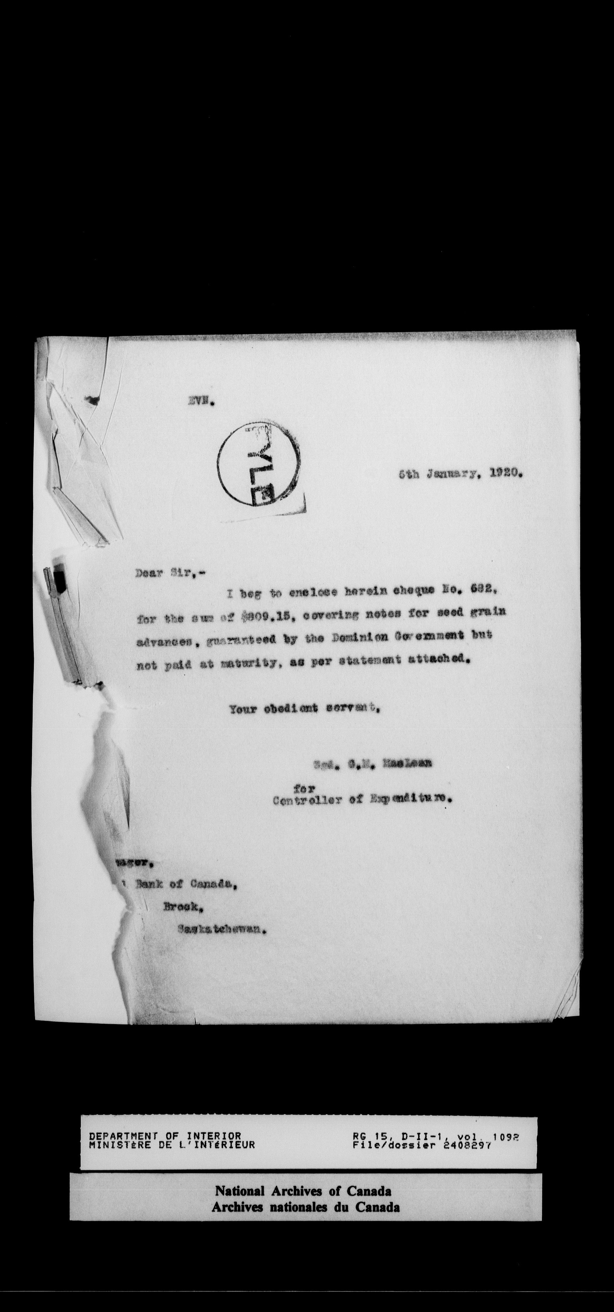 Central registry subject files created by the Dominion Lands Branch - 14656