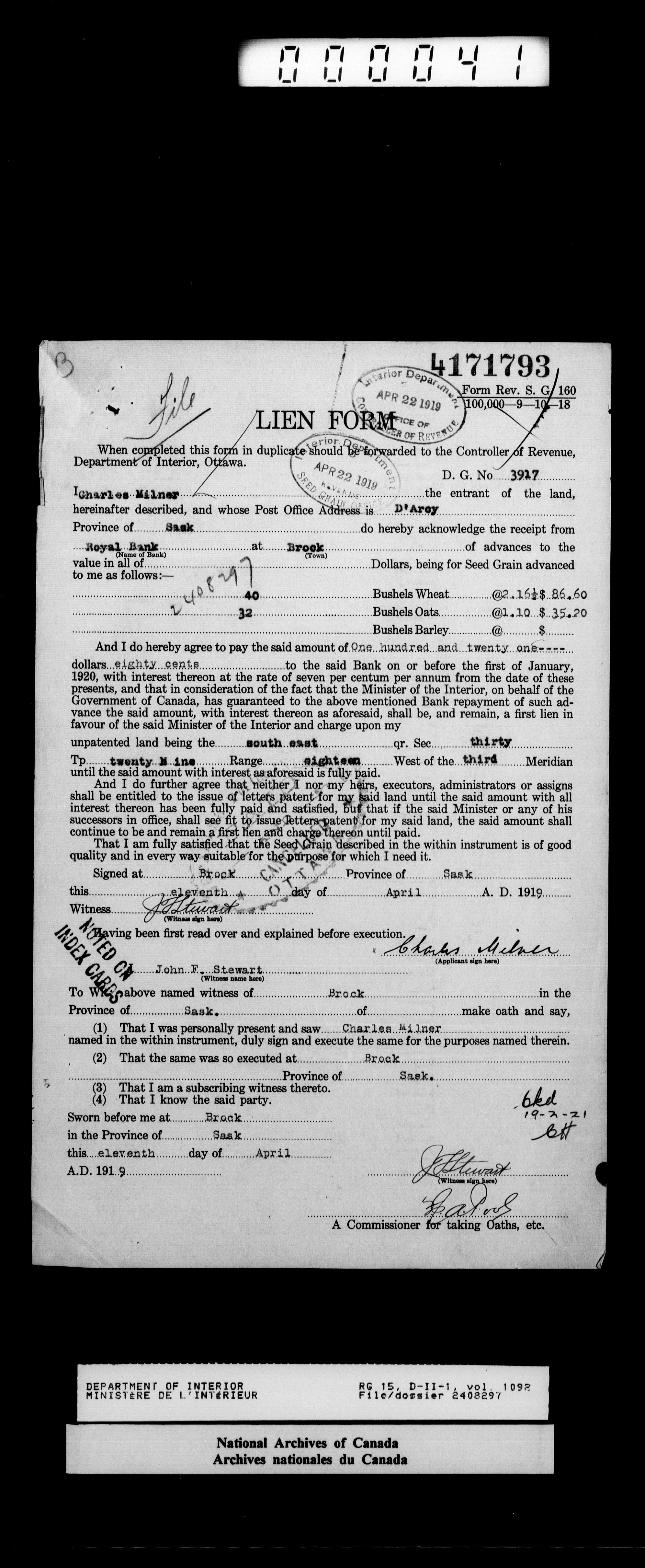 Central registry subject files created by the Dominion Lands Branch - 14656