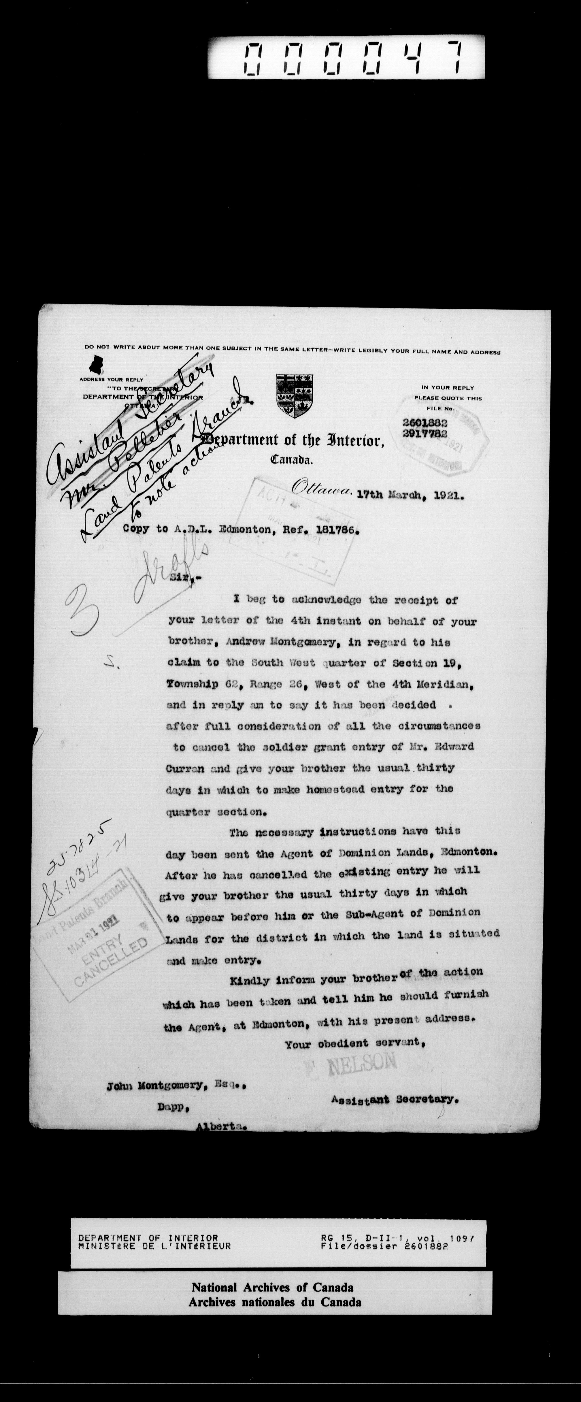 Central registry subject files created by the Dominion Lands Branch - 14660