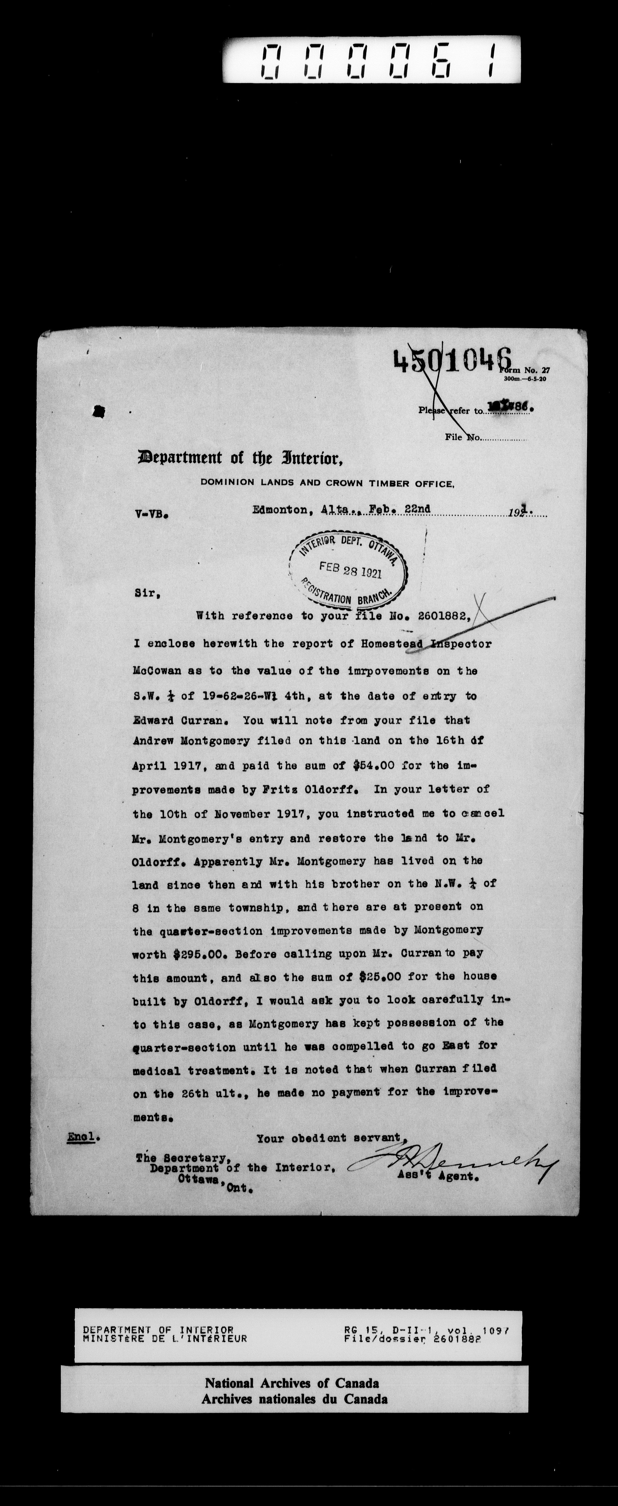 Central registry subject files created by the Dominion Lands Branch - 14660