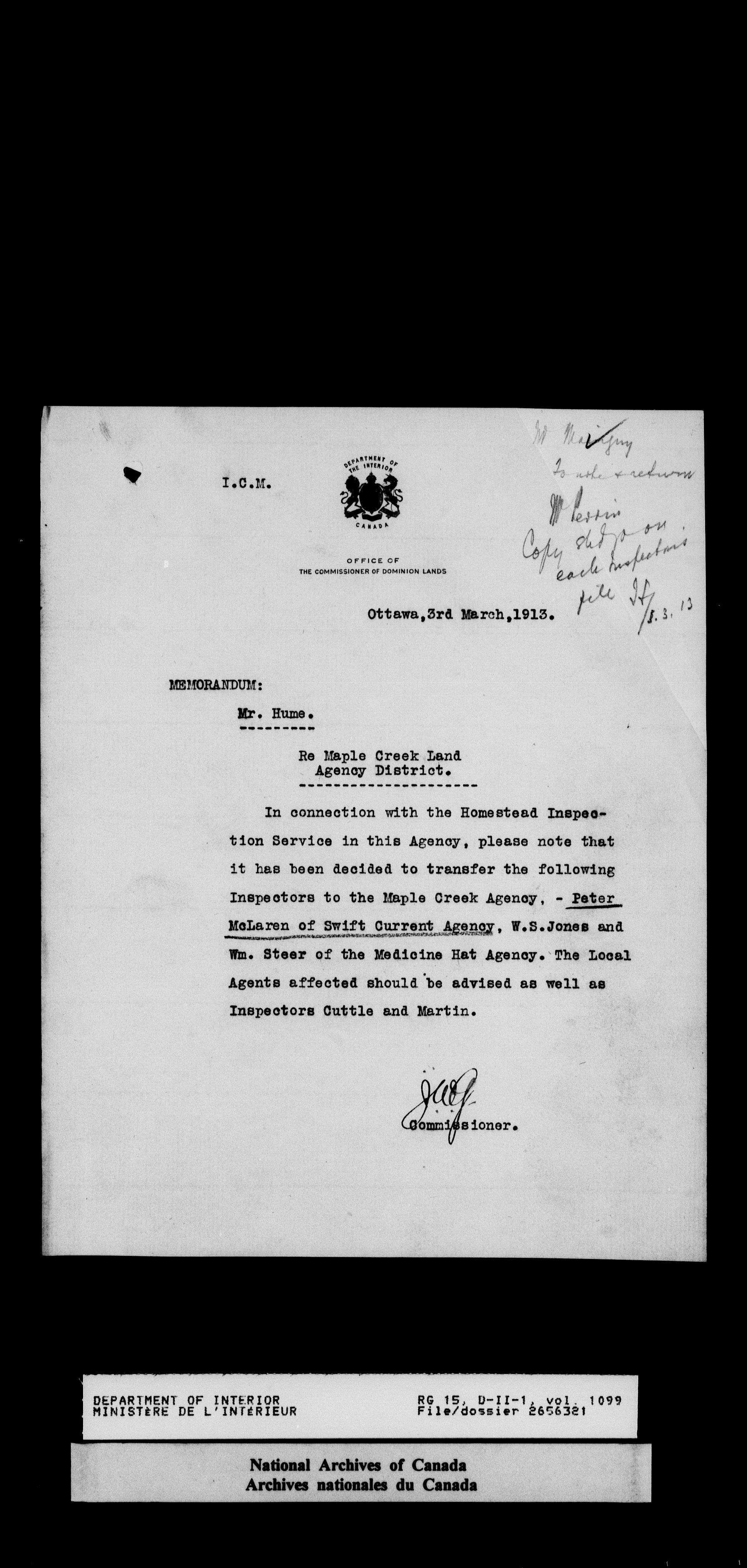 Central registry subject files created by the Dominion Lands Branch - 14661