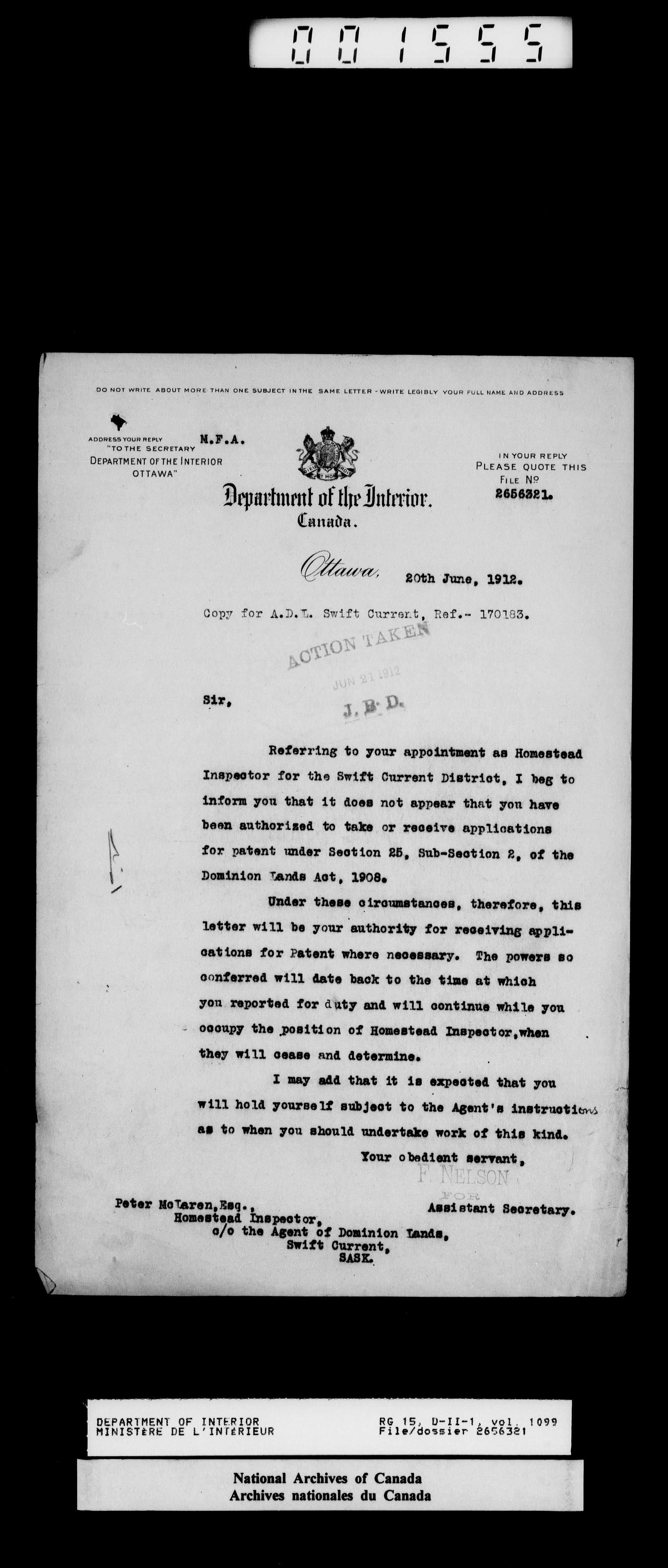 Central registry subject files created by the Dominion Lands Branch - 14661