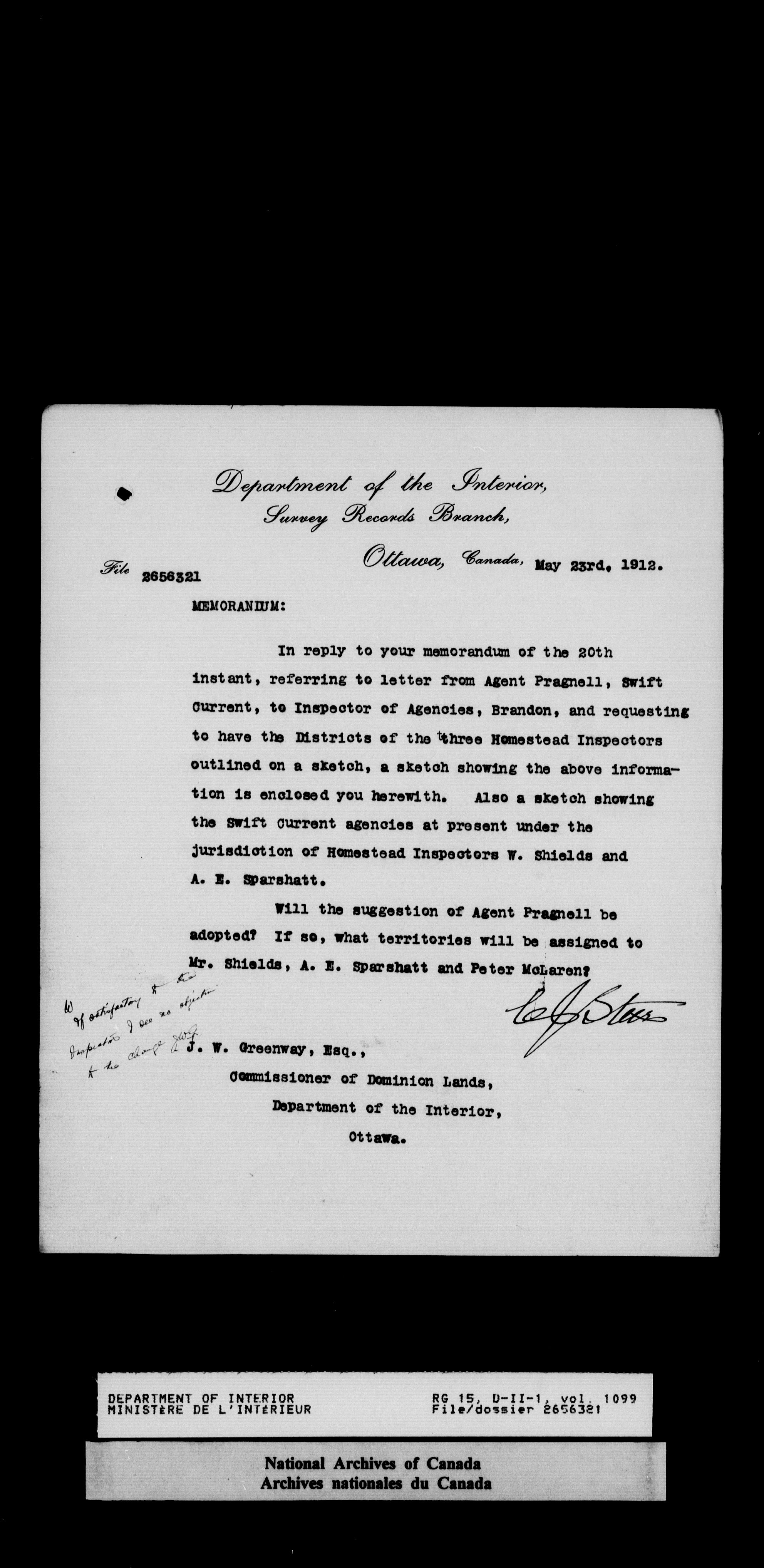 Central registry subject files created by the Dominion Lands Branch - 14661