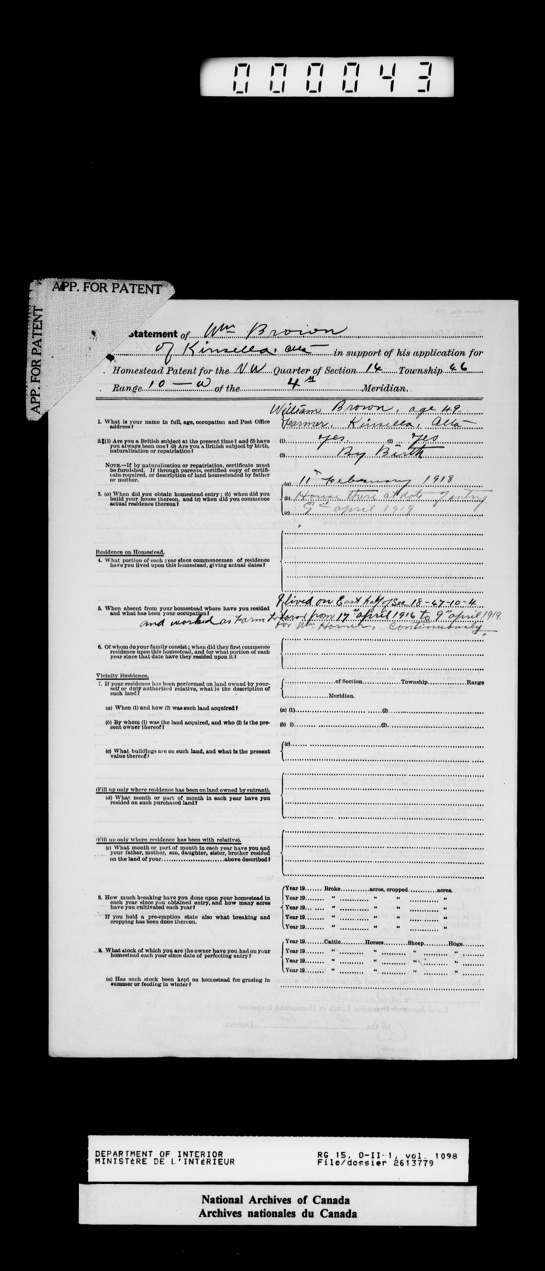Dominion Lands Branch registry : T-14661