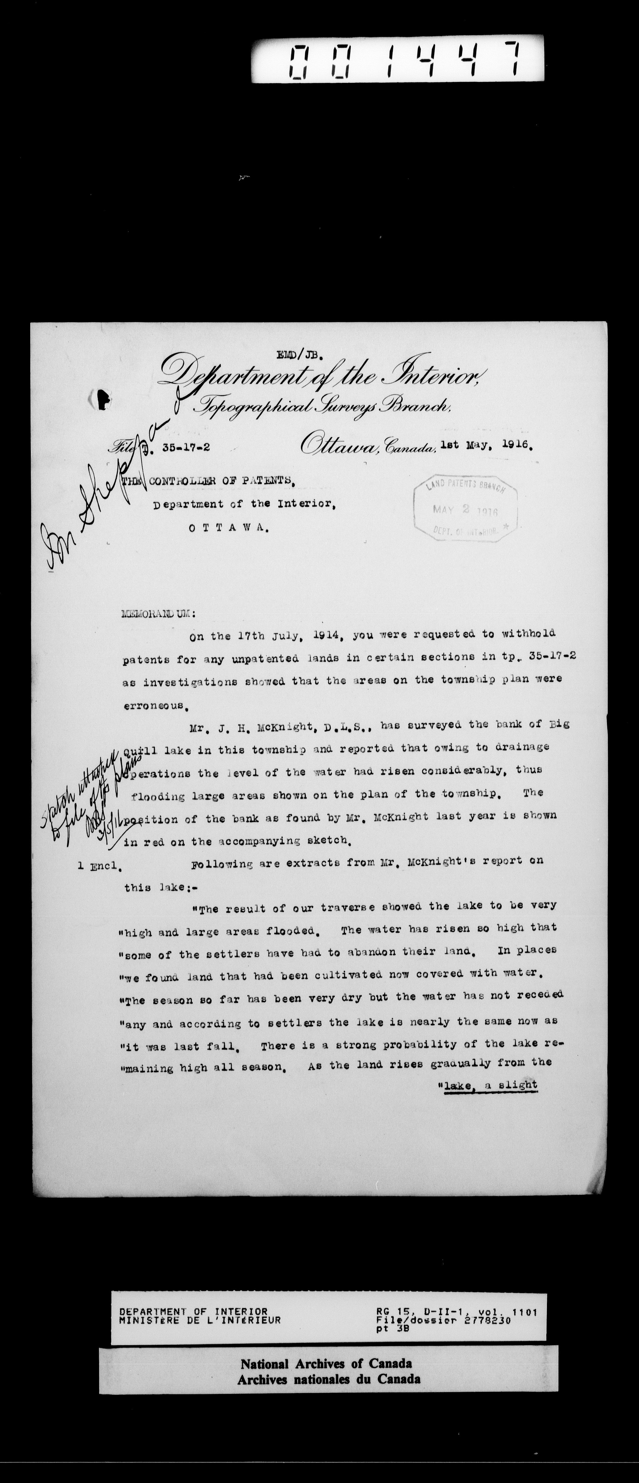 Central registry subject files created by the Dominion Lands Branch - 14663