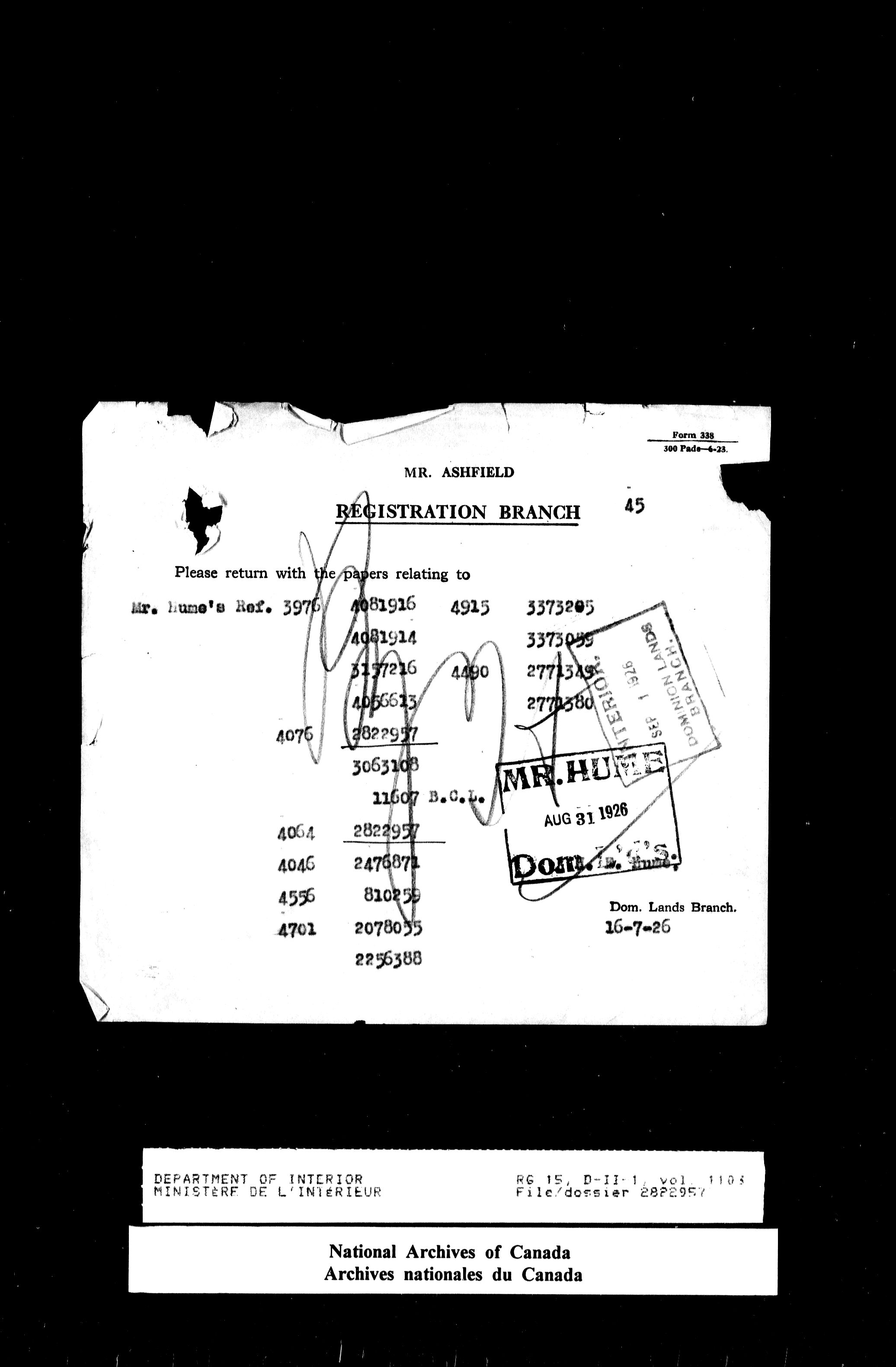 Central registry subject files created by the Dominion Lands Branch - 14666