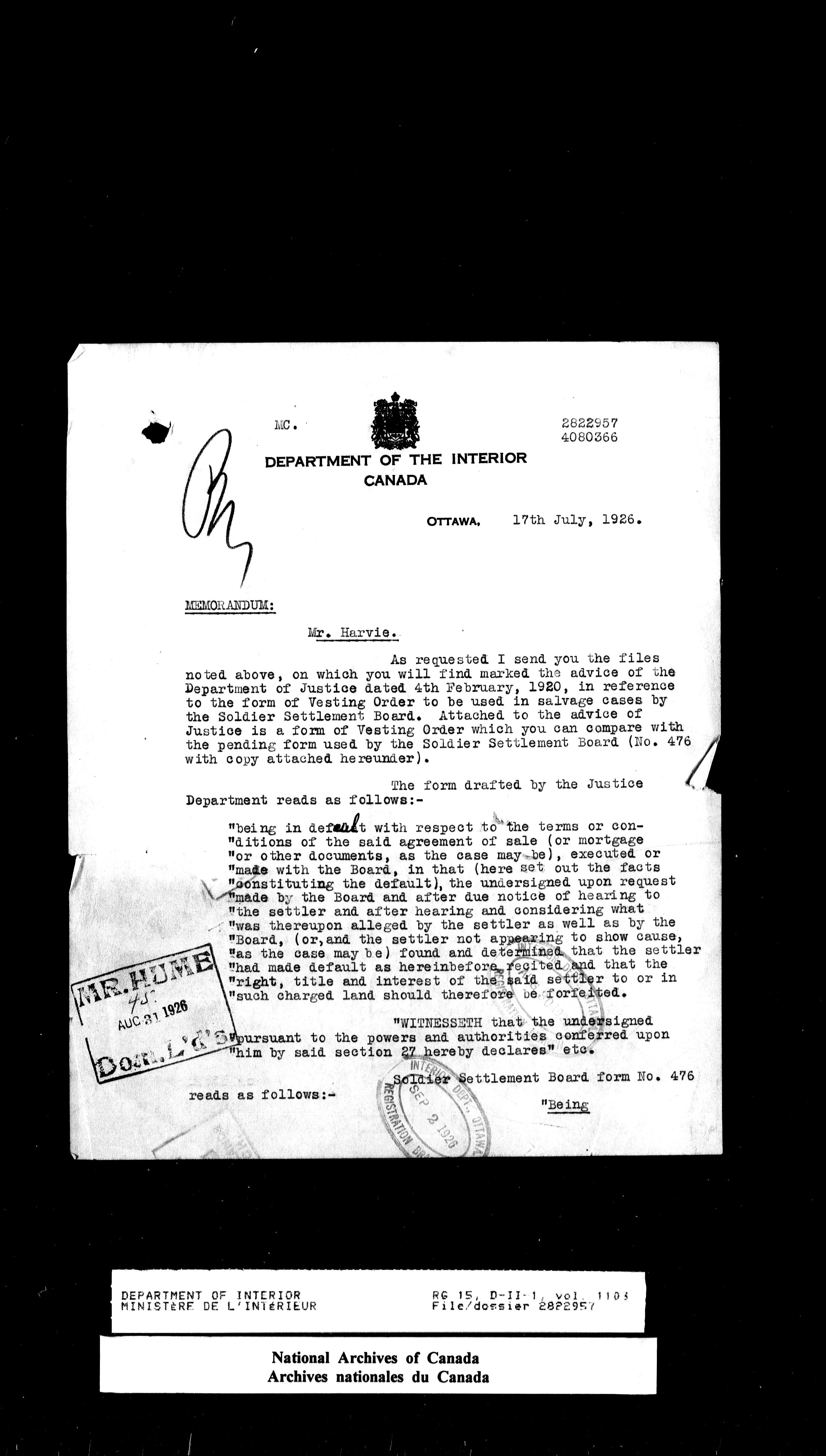 Central registry subject files created by the Dominion Lands Branch - 14666