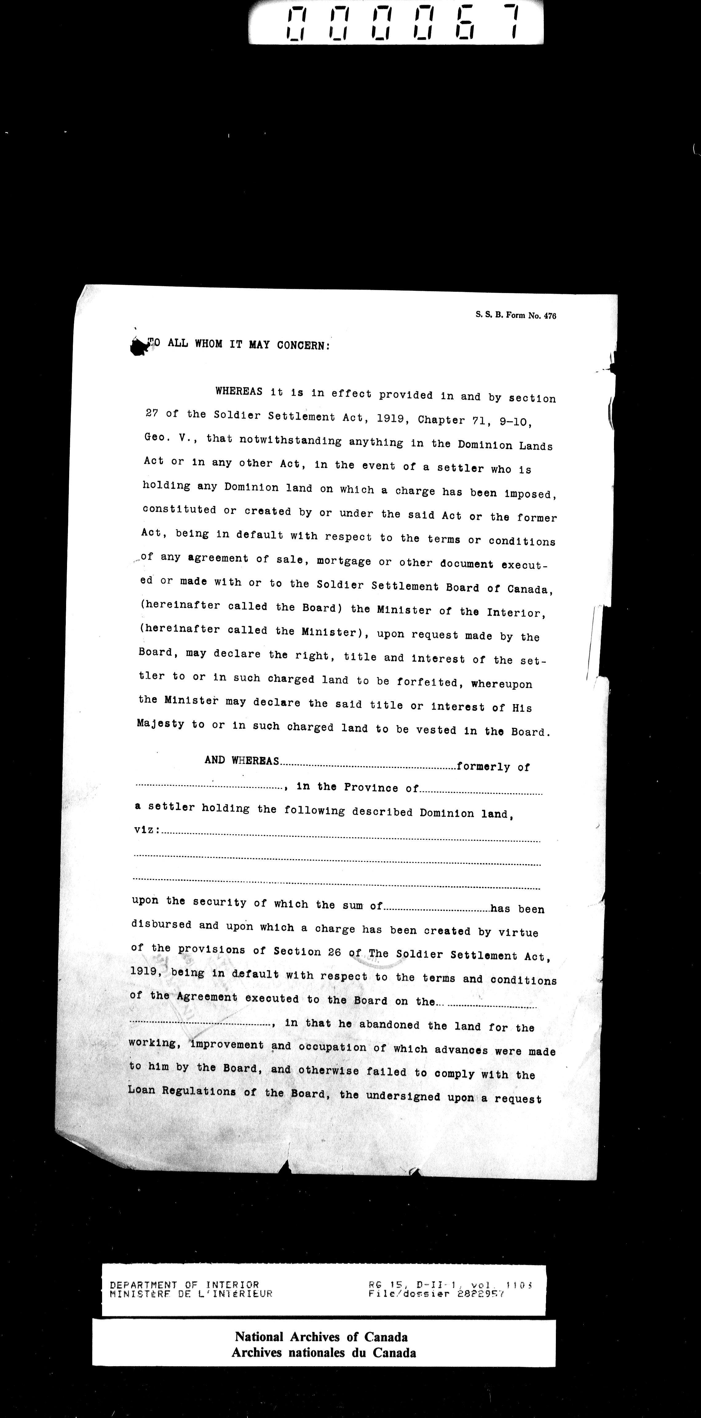 Central registry subject files created by the Dominion Lands Branch - 14666