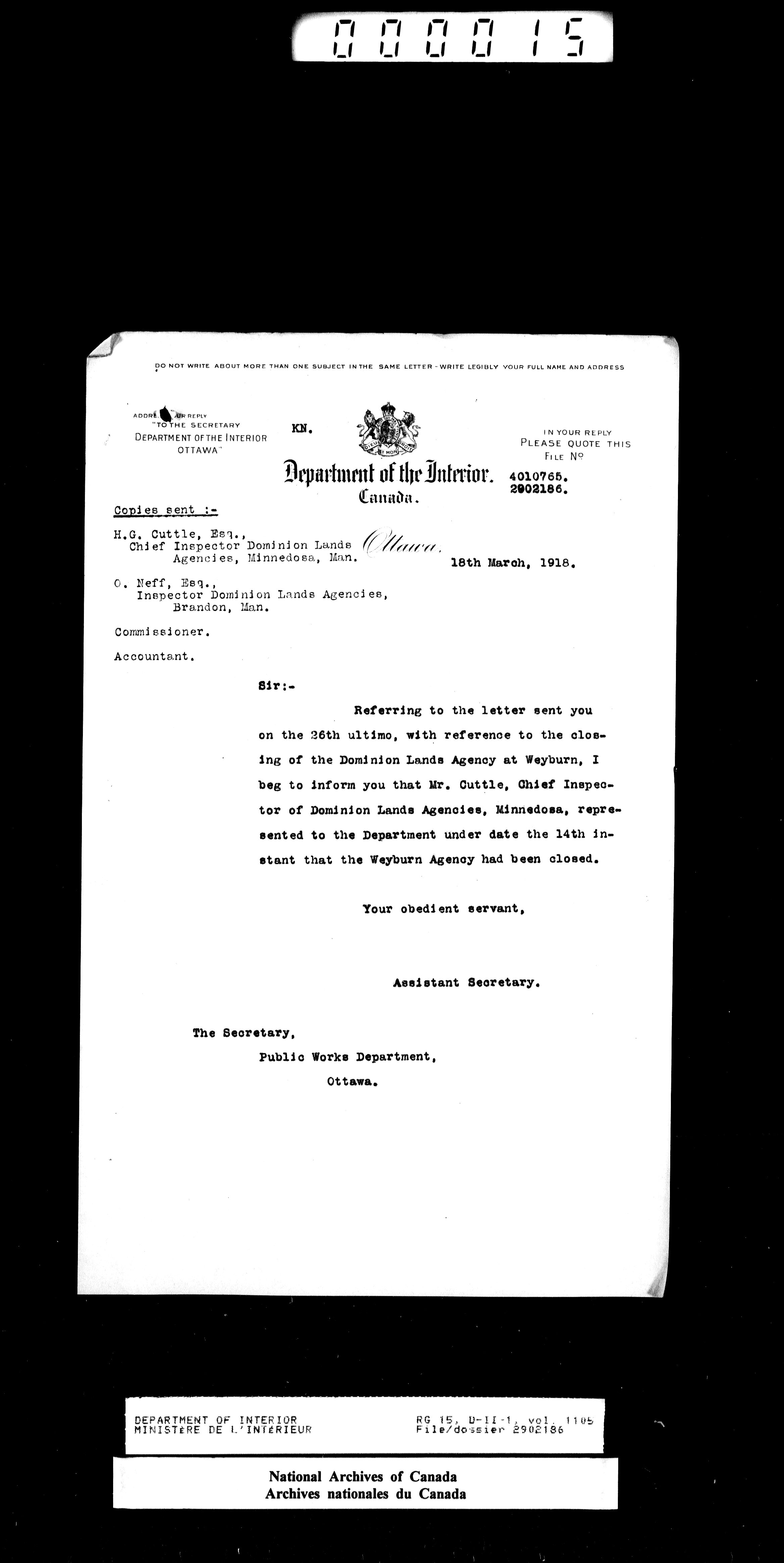 Central registry subject files created by the Dominion Lands Branch - 14668