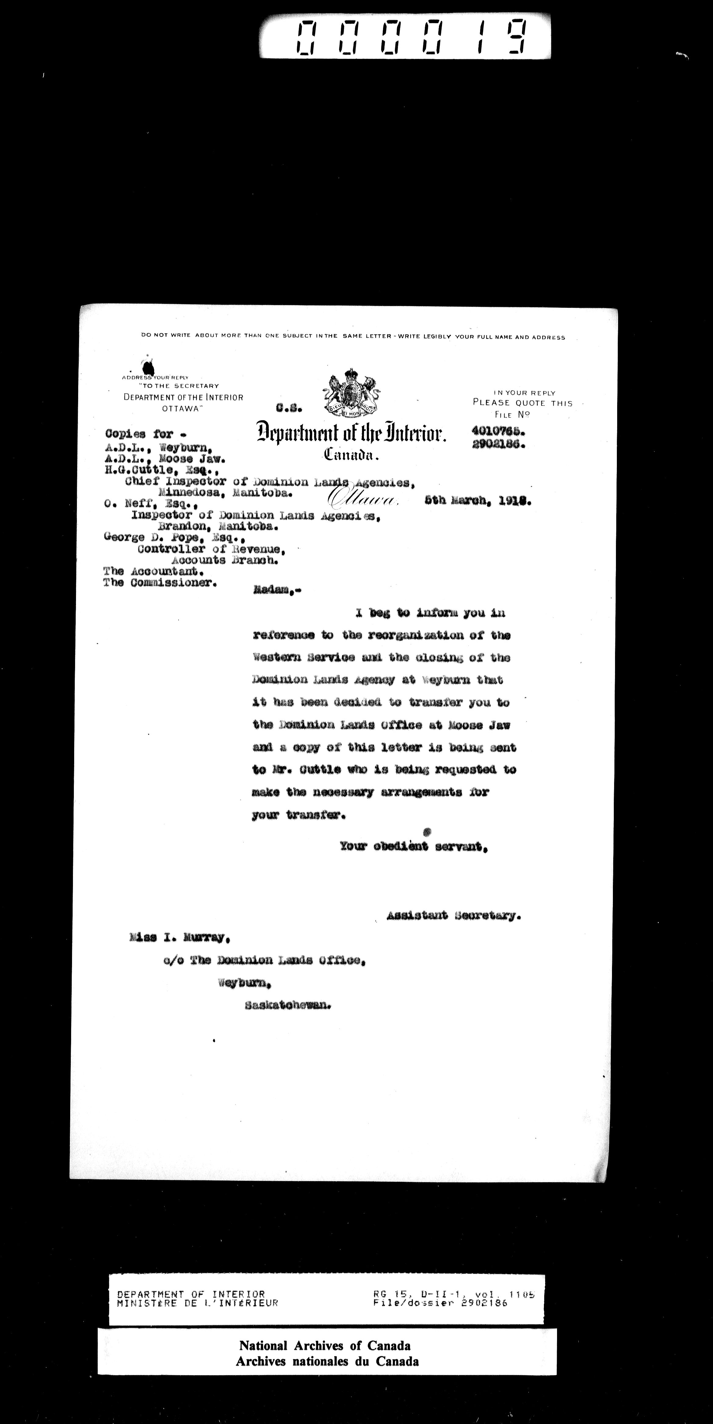 Central registry subject files created by the Dominion Lands Branch - 14668