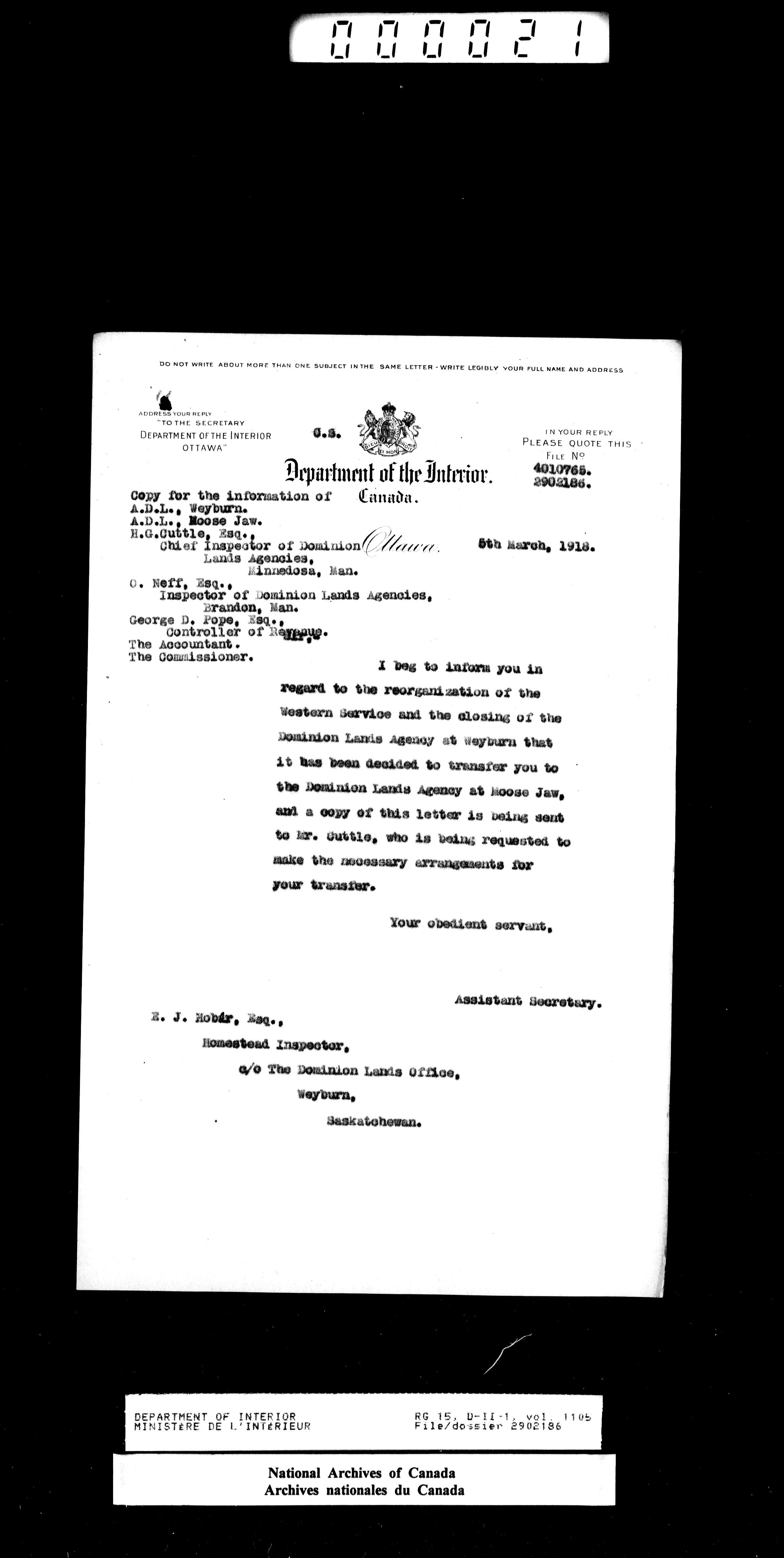 Central registry subject files created by the Dominion Lands Branch - 14668