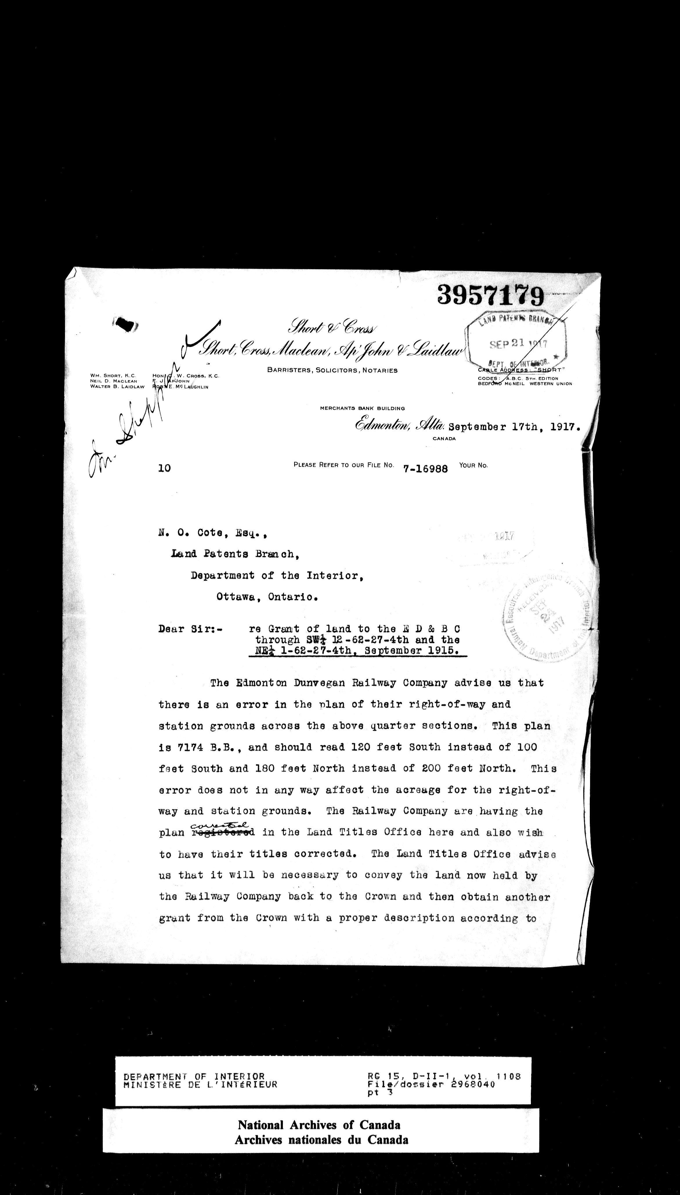 Central registry subject files created by the Dominion Lands Branch - 14670