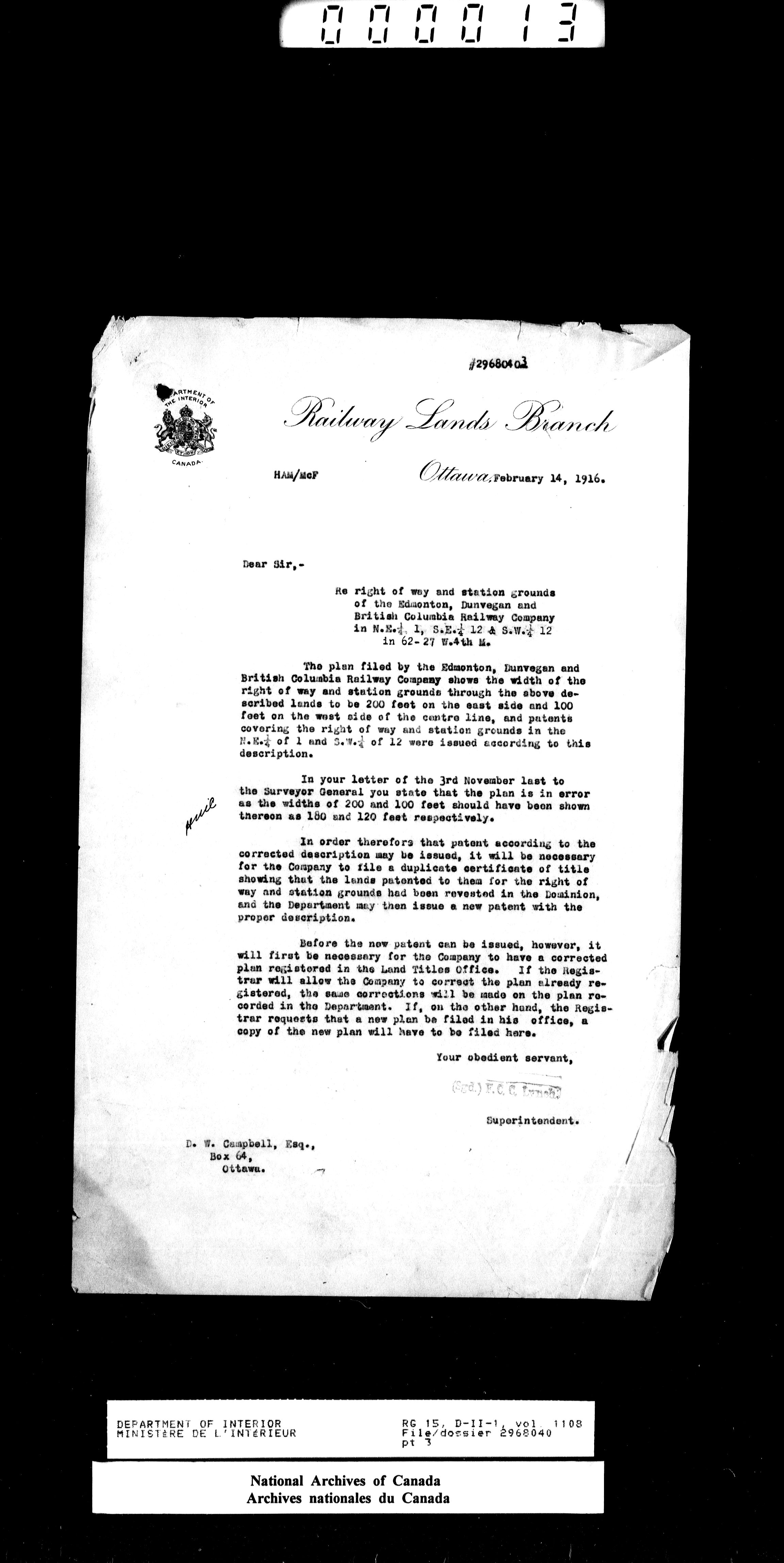 Central registry subject files created by the Dominion Lands Branch - 14670