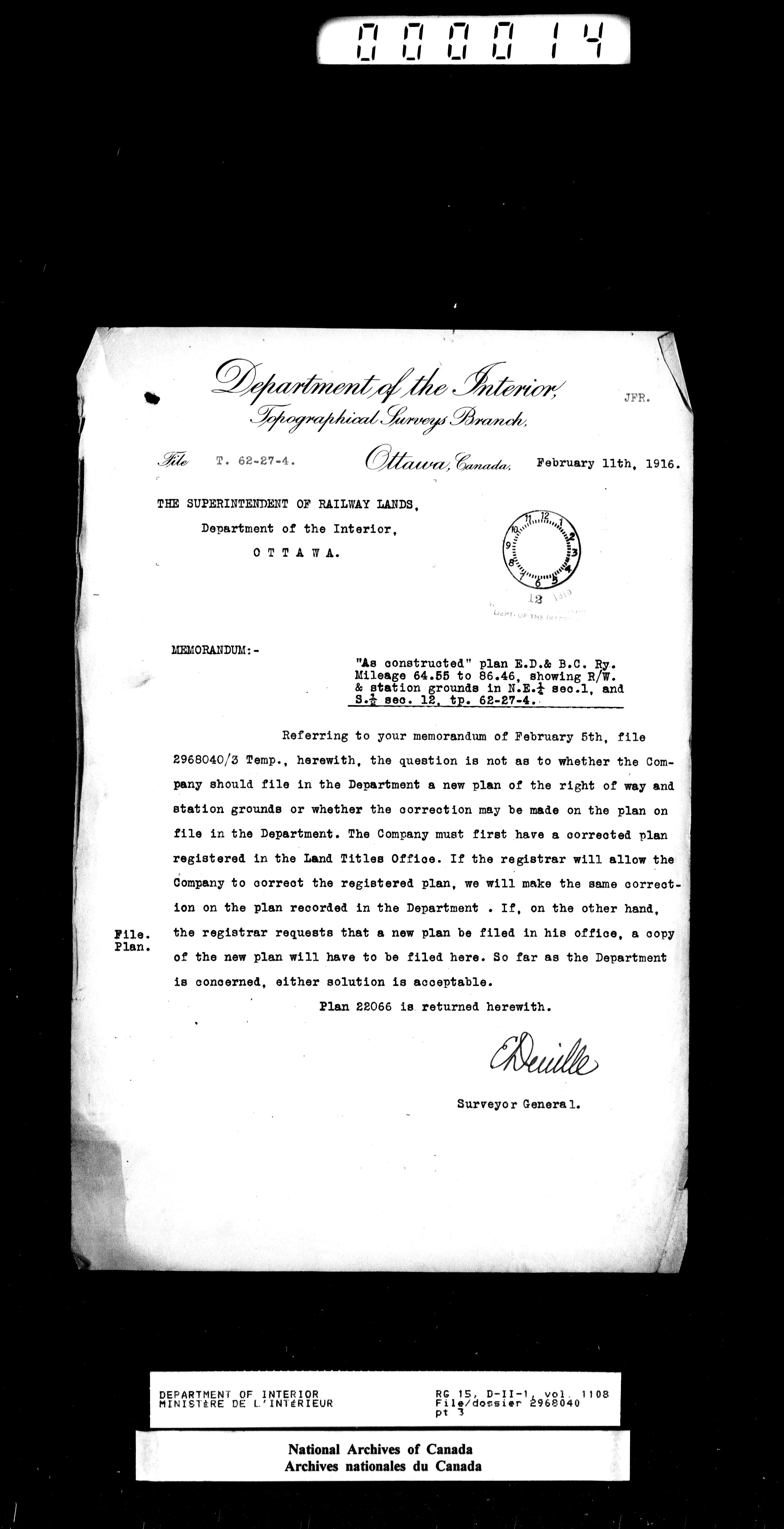 Central registry subject files created by the Dominion Lands Branch - 14670