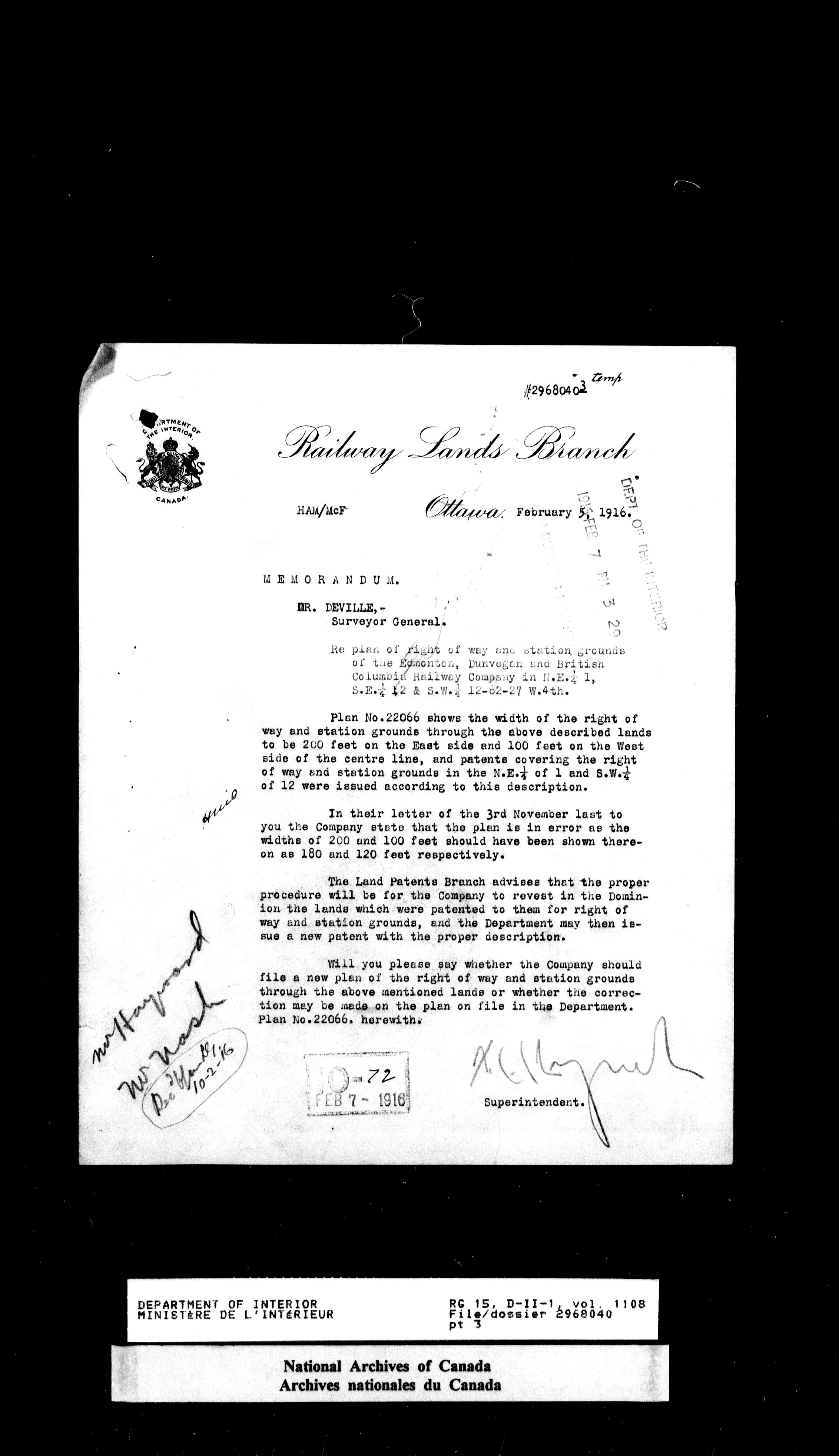 Central registry subject files created by the Dominion Lands Branch - 14670