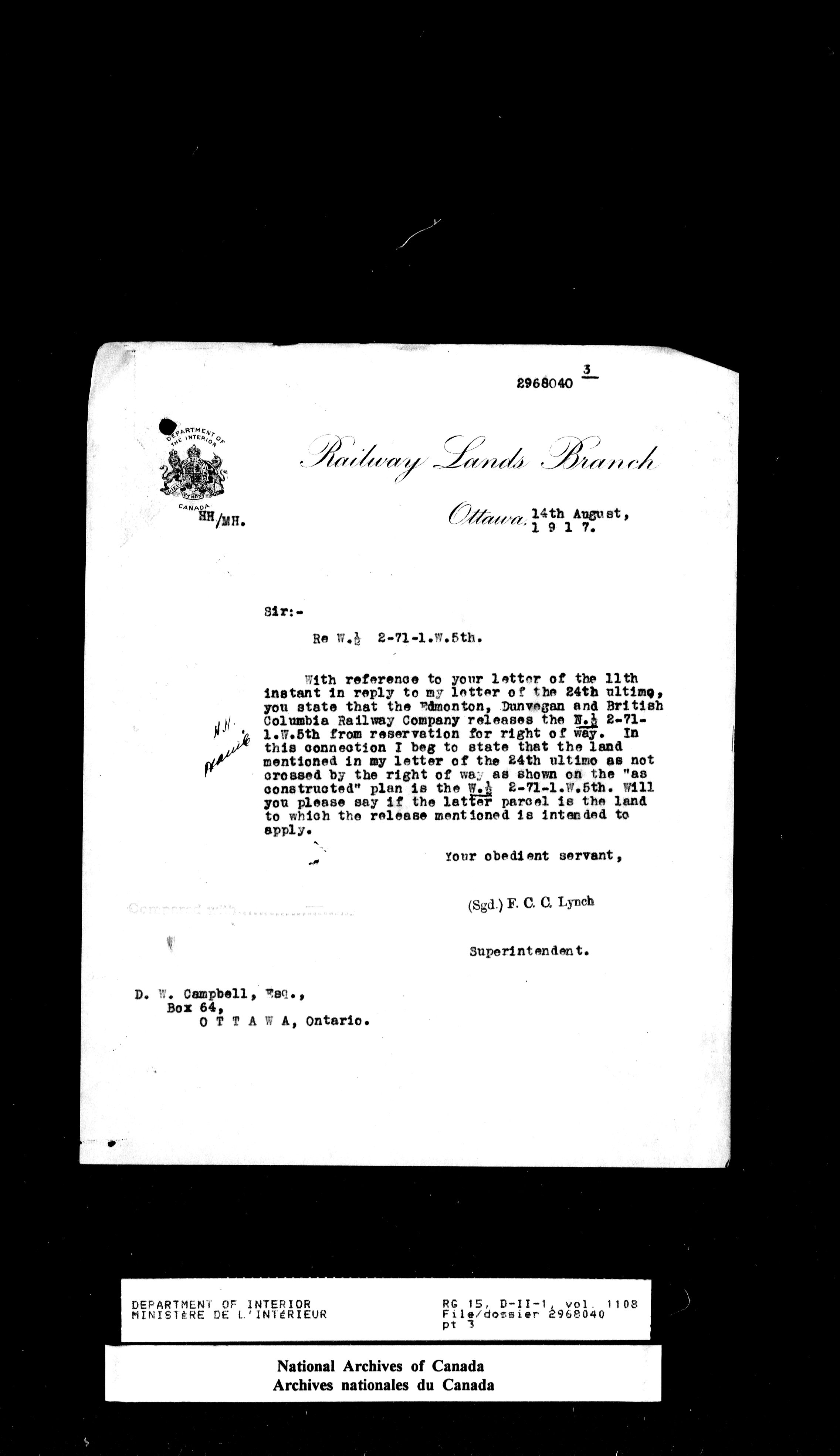 Central registry subject files created by the Dominion Lands Branch - 14670