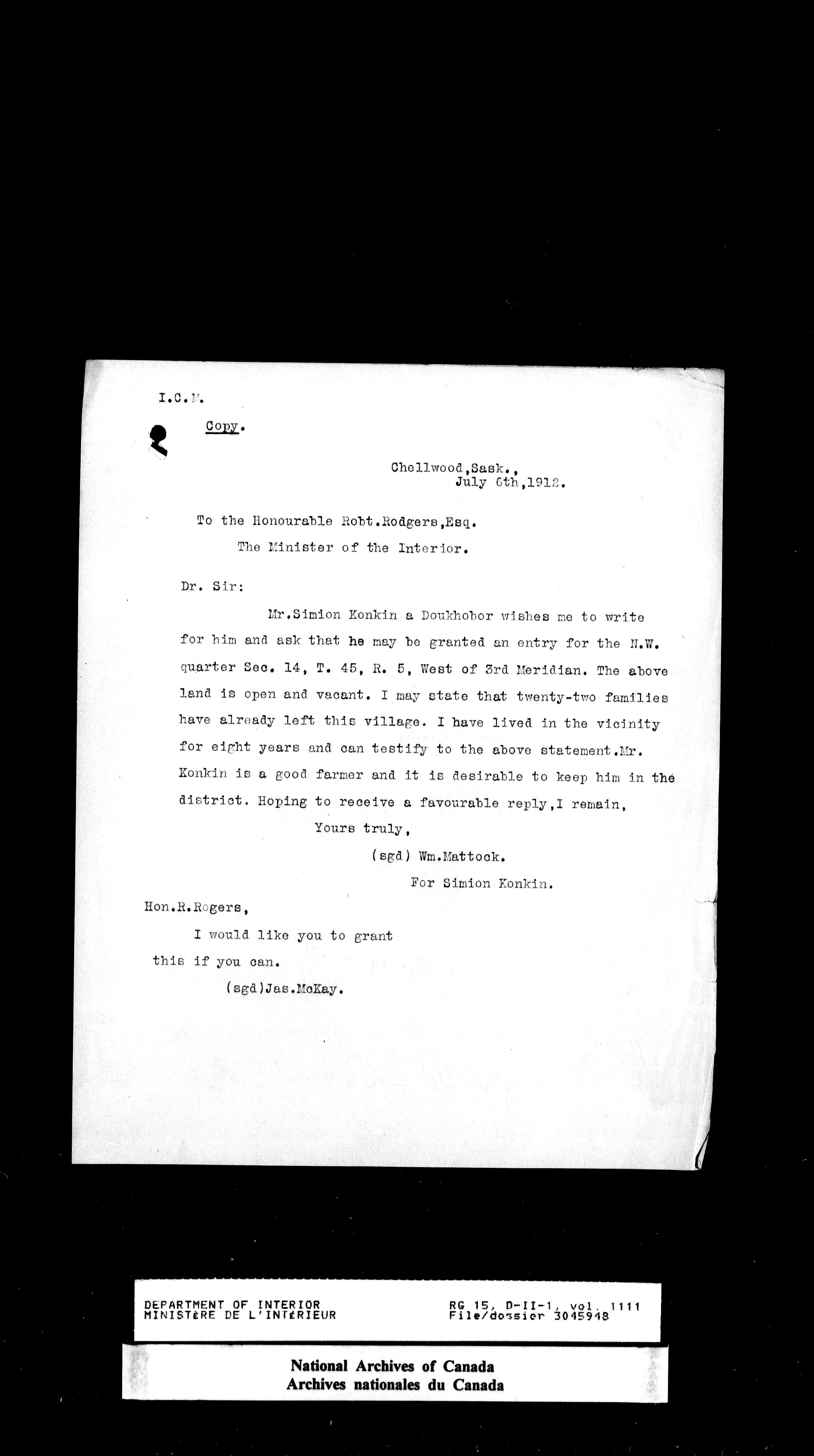 Central registry subject files created by the Dominion Lands Branch - 14672