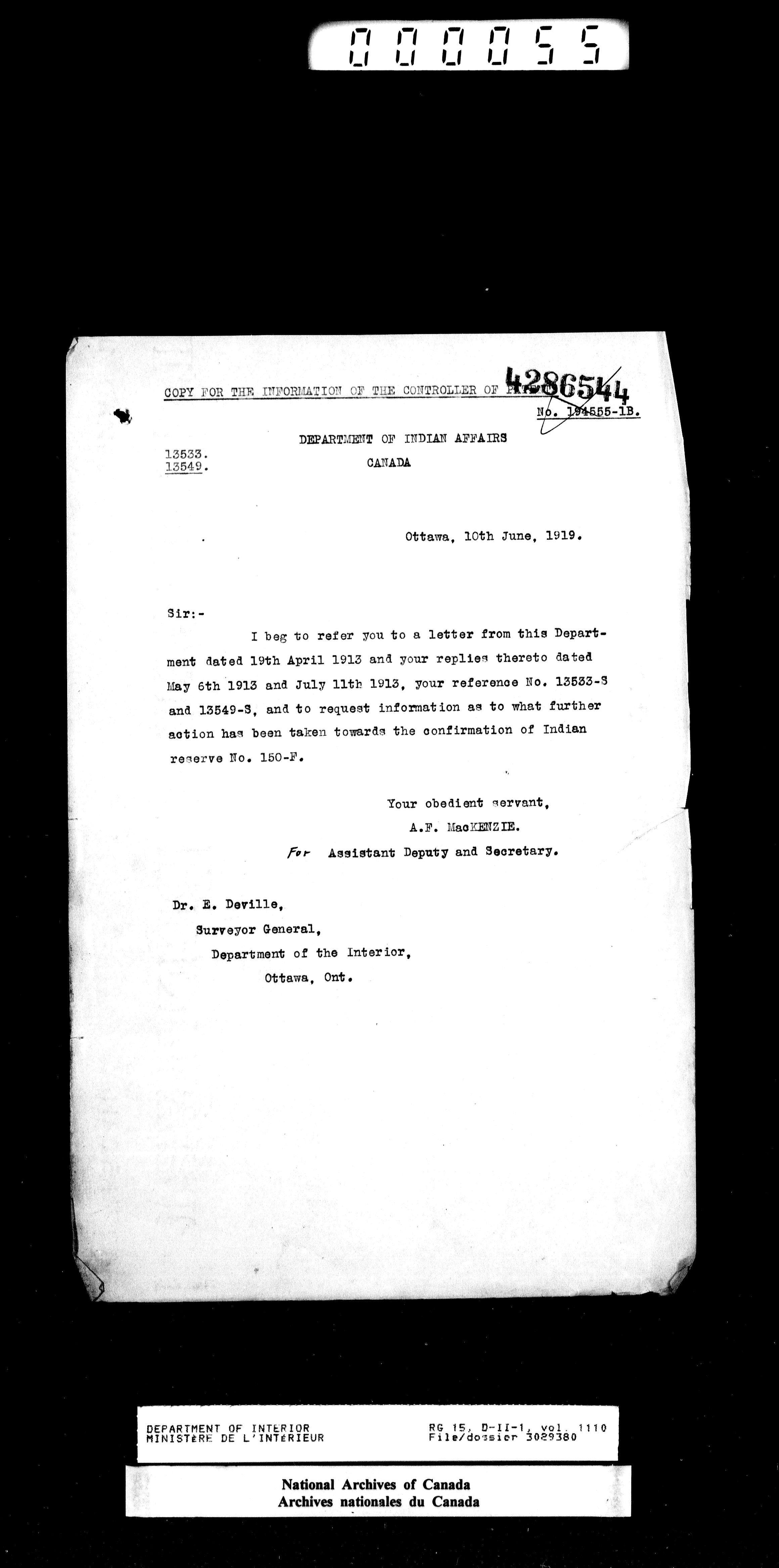 Central registry subject files created by the Dominion Lands Branch - 14672