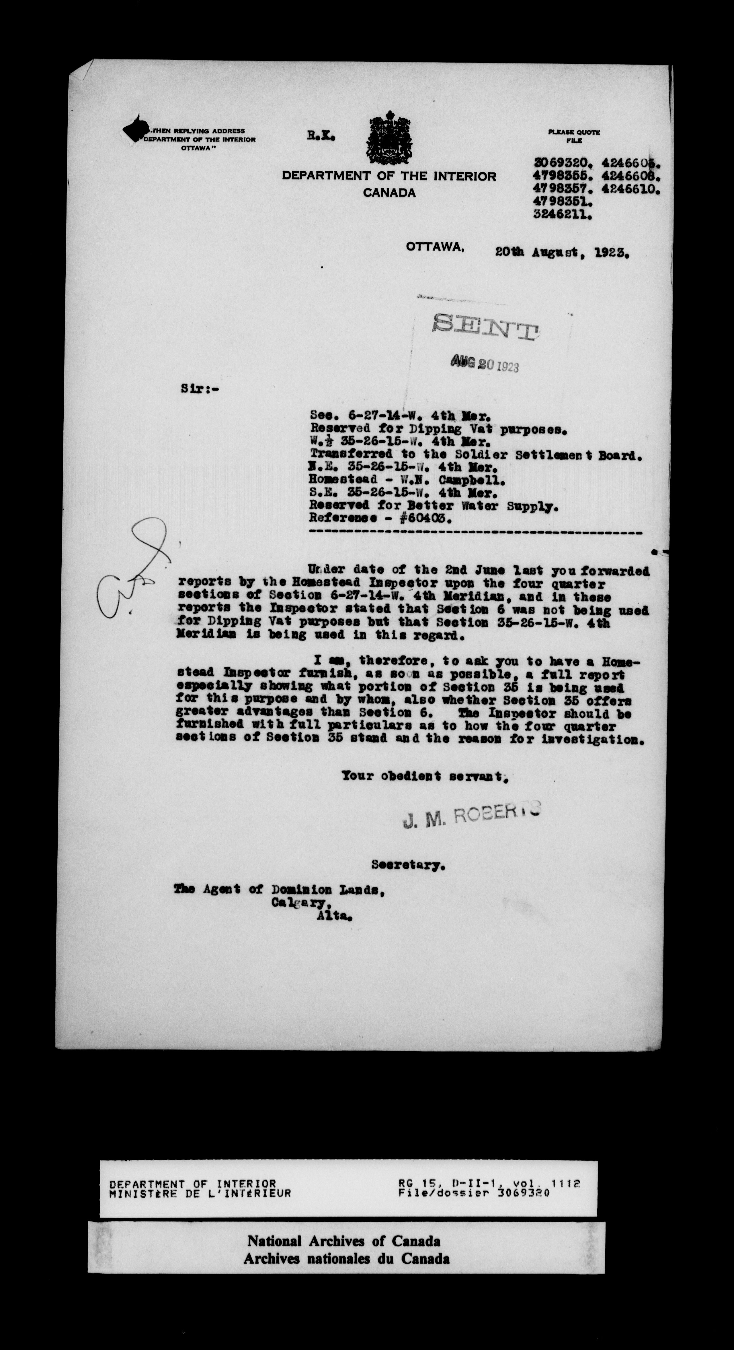 Central registry subject files created by the Dominion Lands Branch - 14674