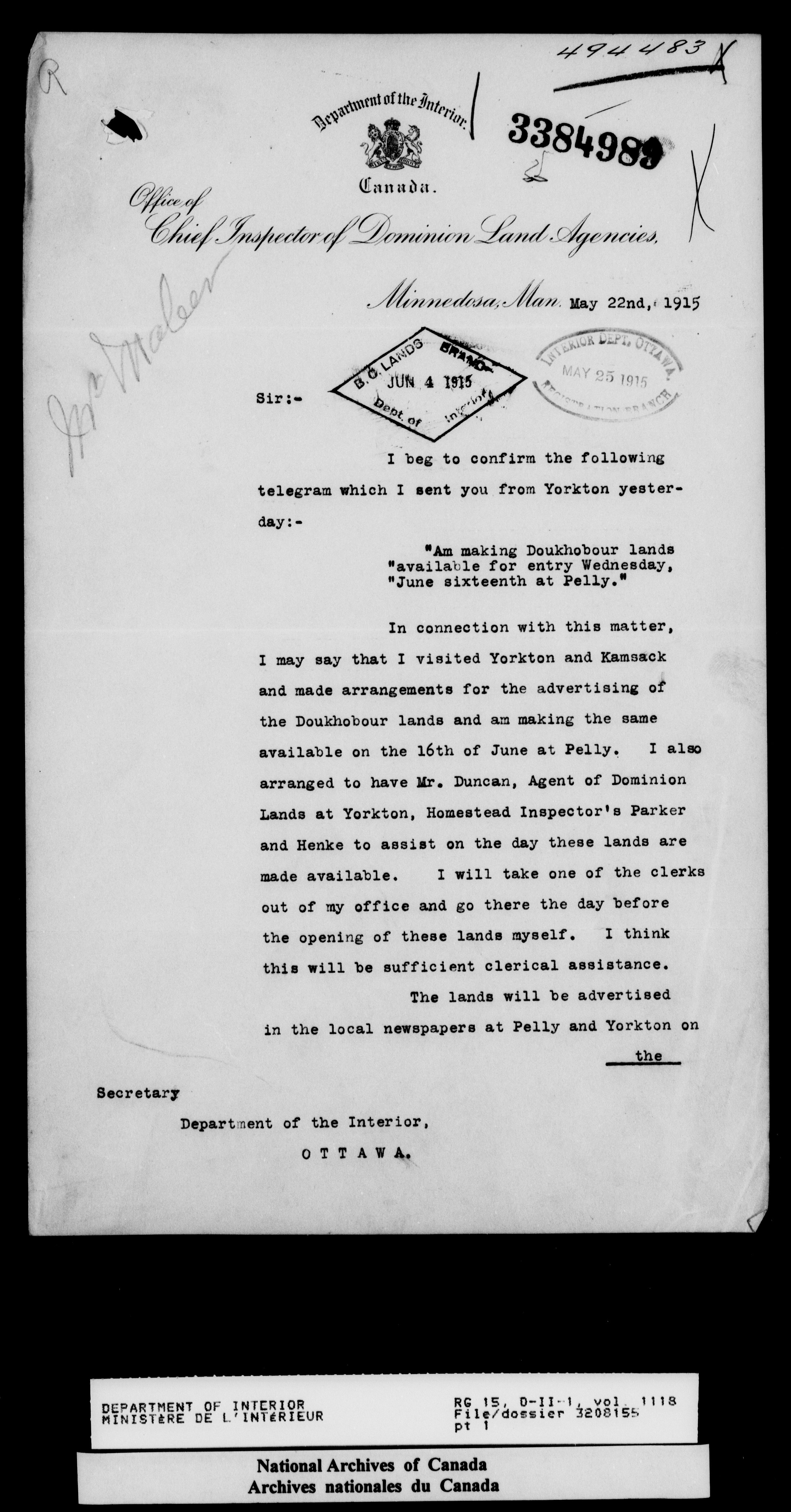 Central registry subject files created by the Dominion Lands Branch - 14678