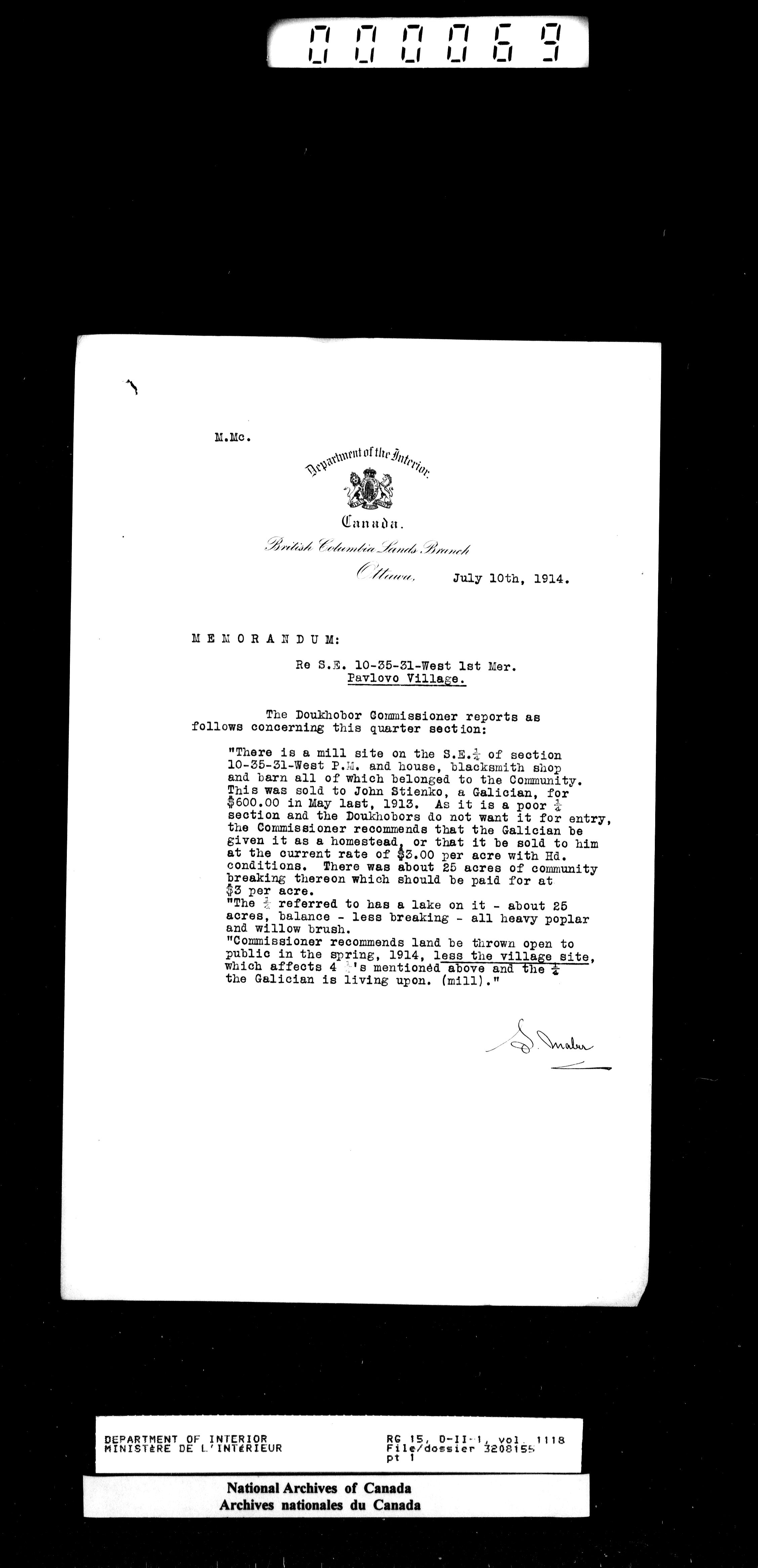Central registry subject files created by the Dominion Lands Branch - 14679