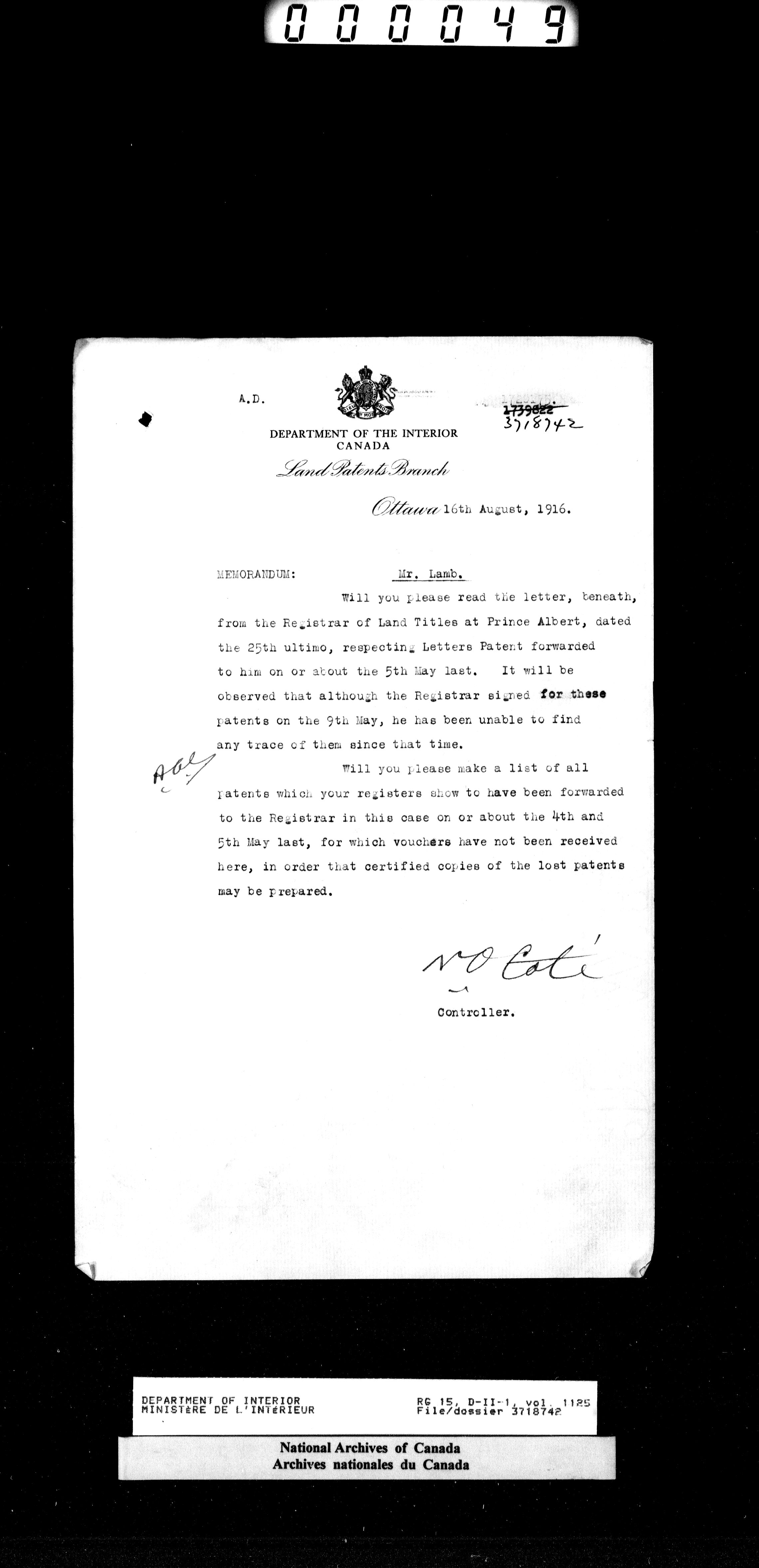 Central registry subject files created by the Dominion Lands Branch - 14686