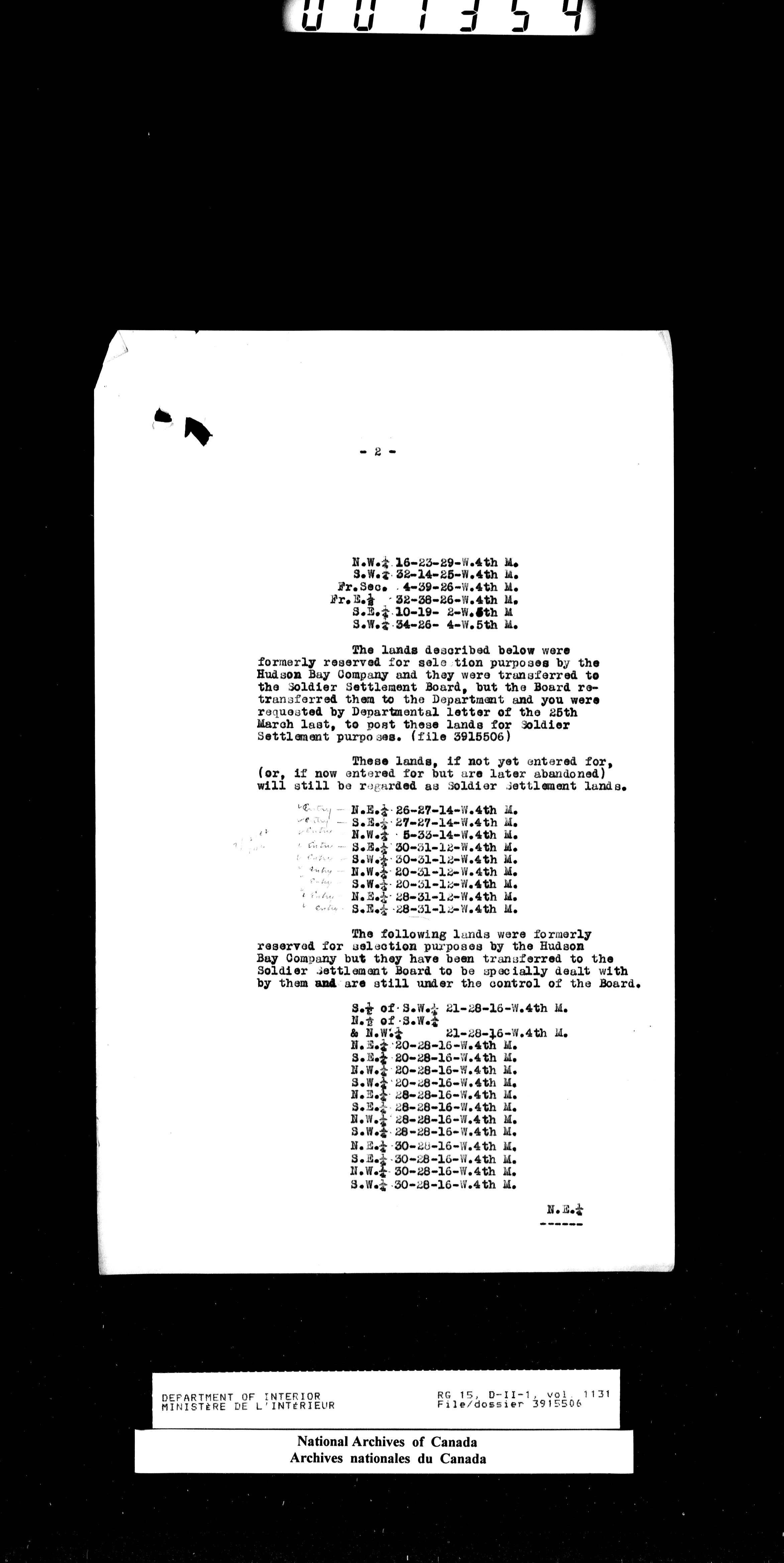 Central registry subject files created by the Dominion Lands Branch - 14691