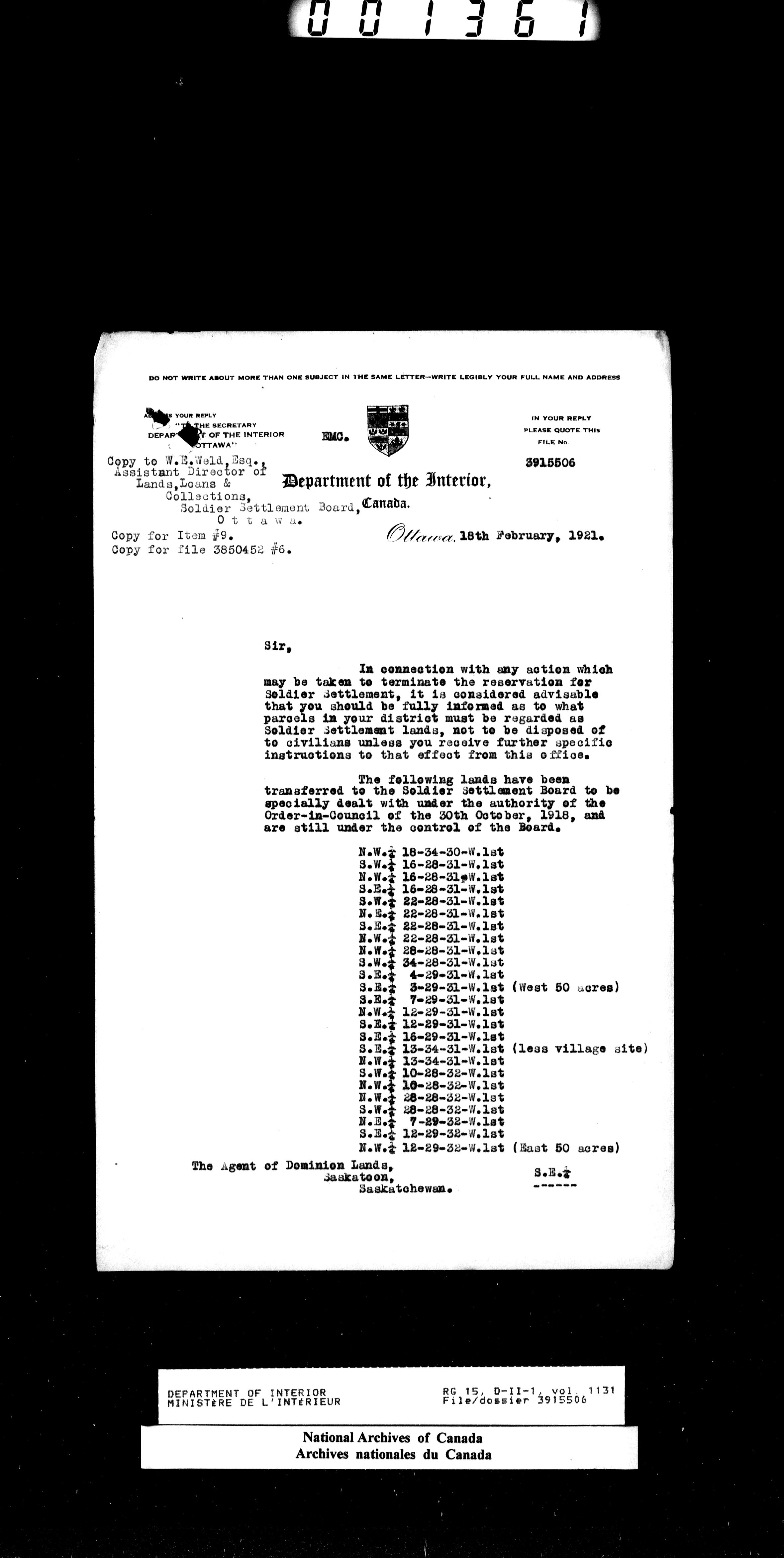 Central registry subject files created by the Dominion Lands Branch - 14691