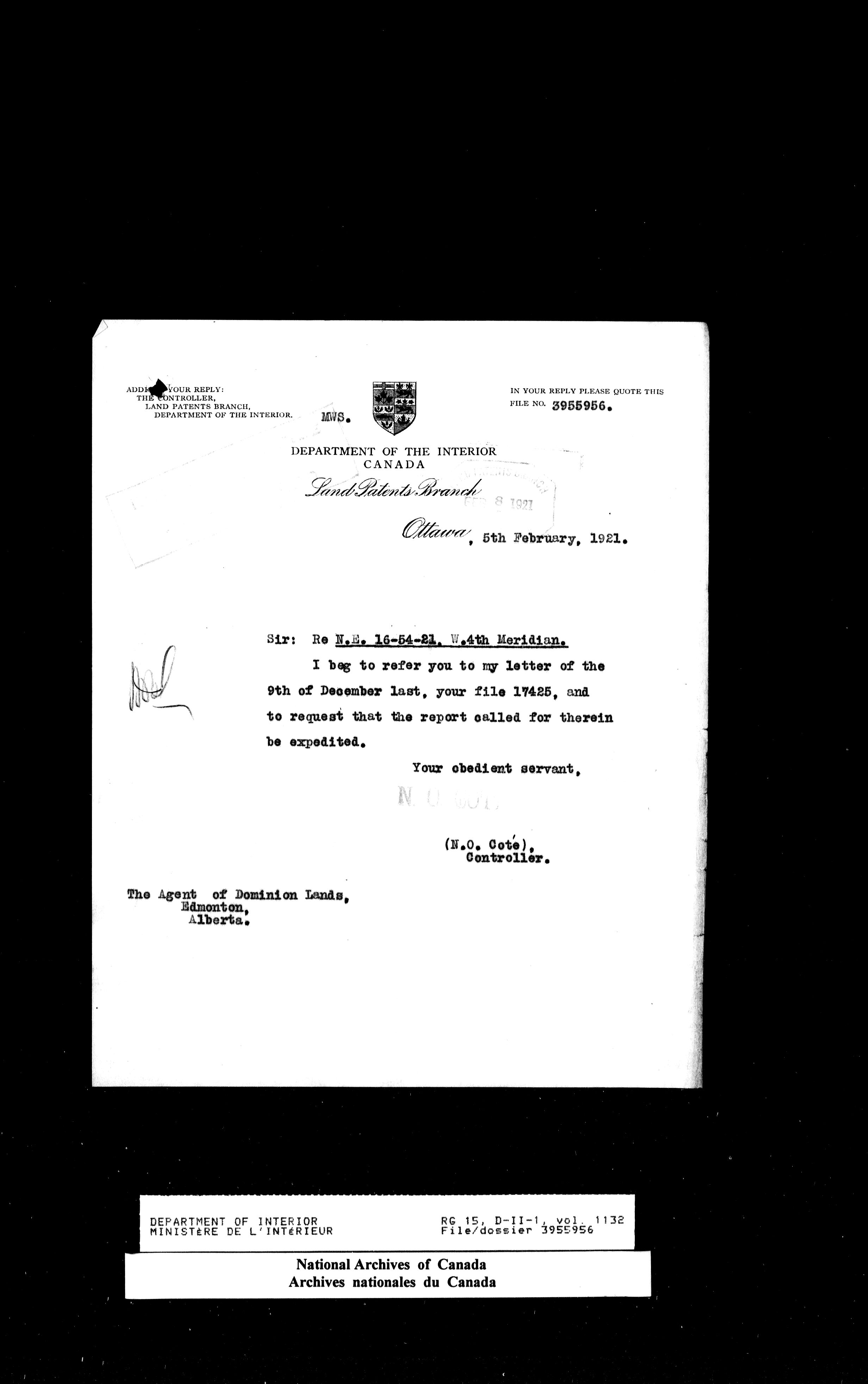 Central registry subject files created by the Dominion Lands Branch - 14692