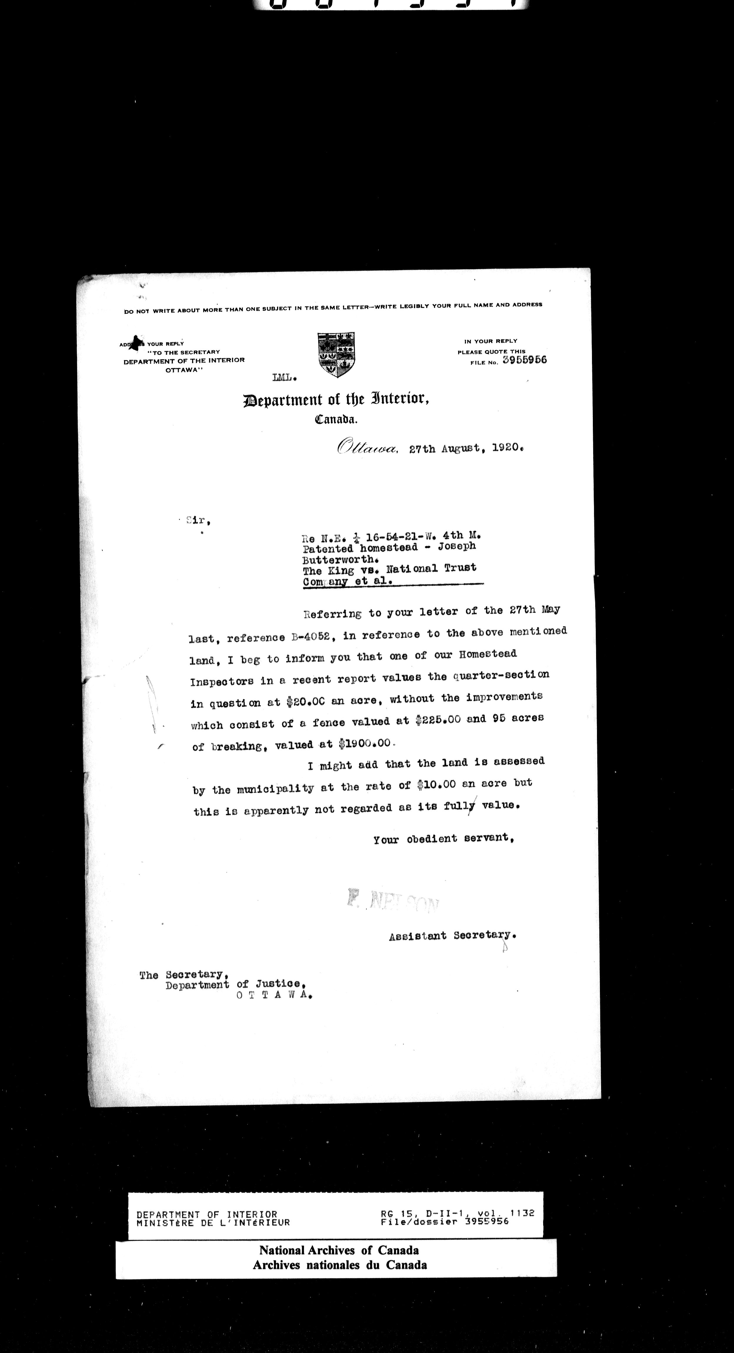 Central registry subject files created by the Dominion Lands Branch - 14692