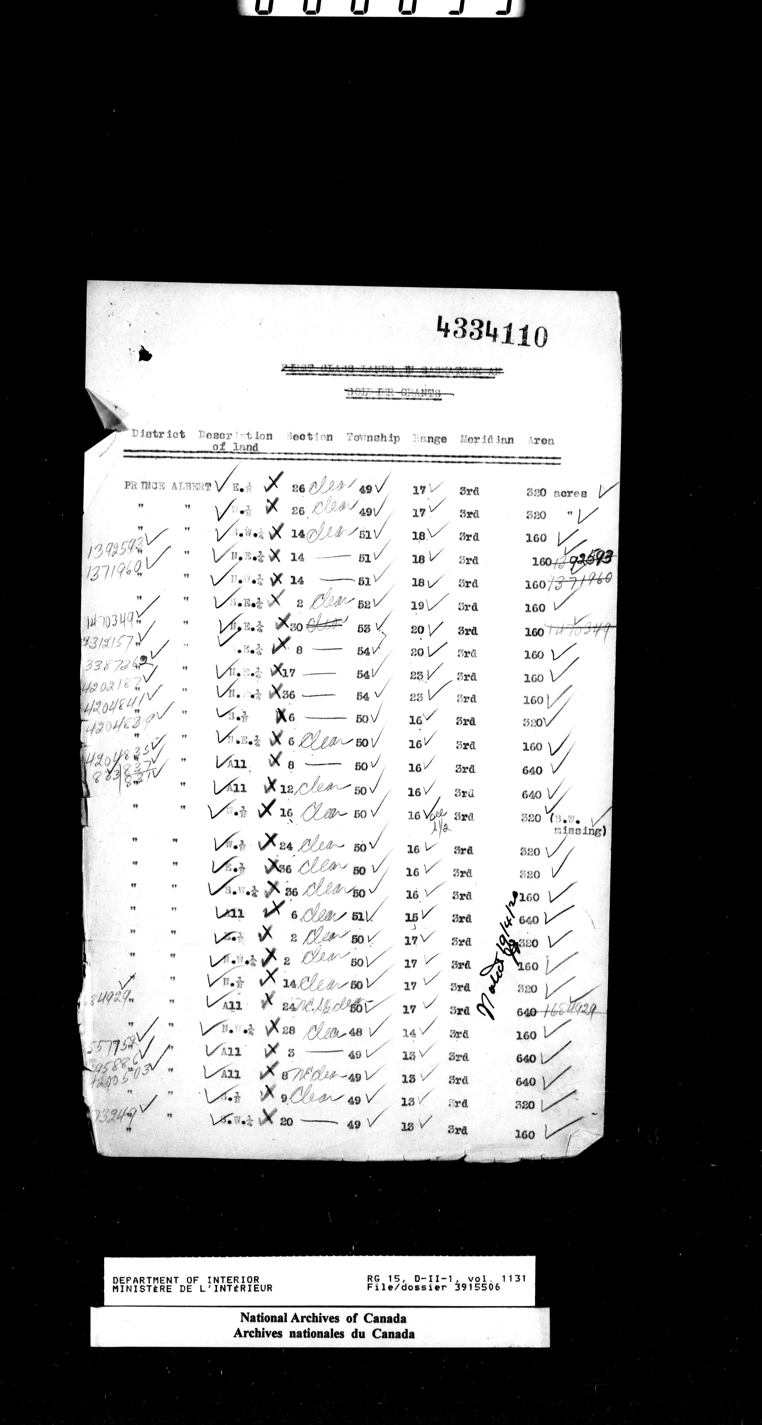Central registry subject files created by the Dominion Lands Branch - 14692