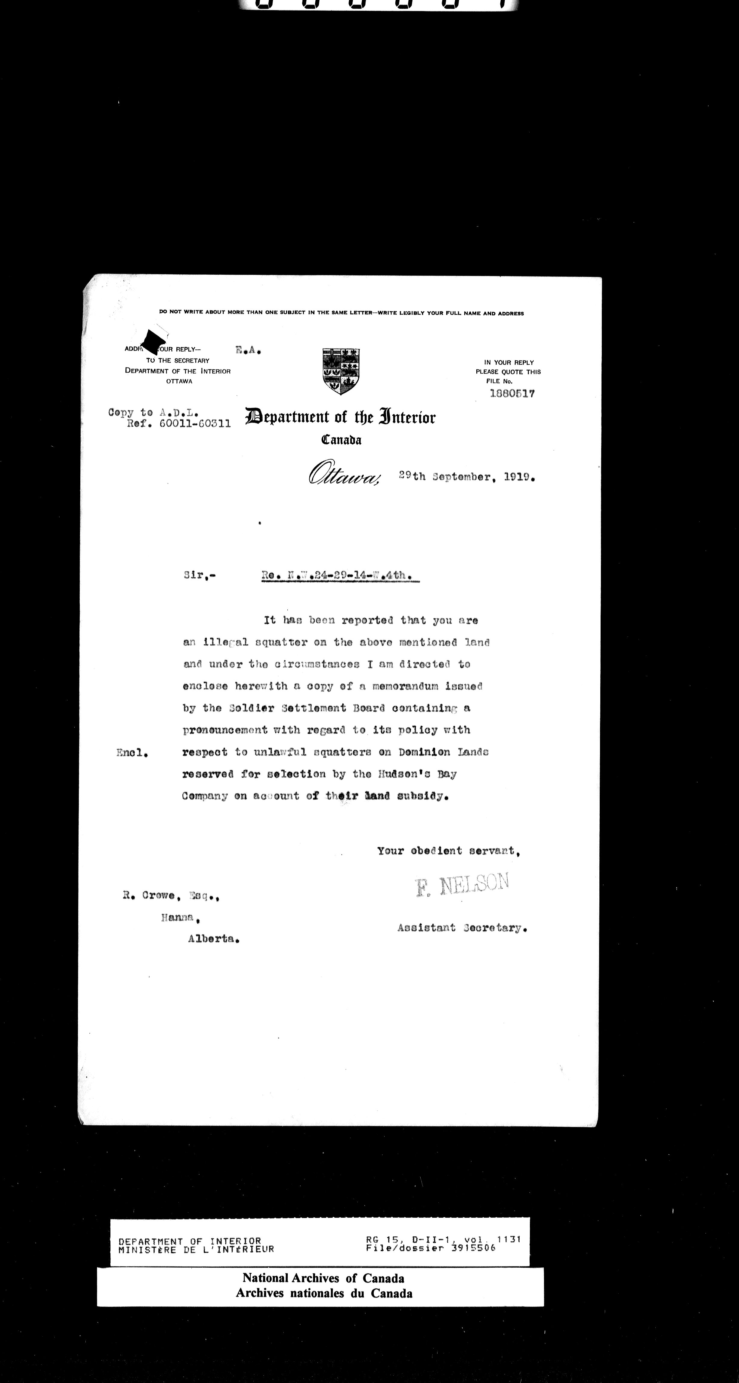 Central registry subject files created by the Dominion Lands Branch - 14692