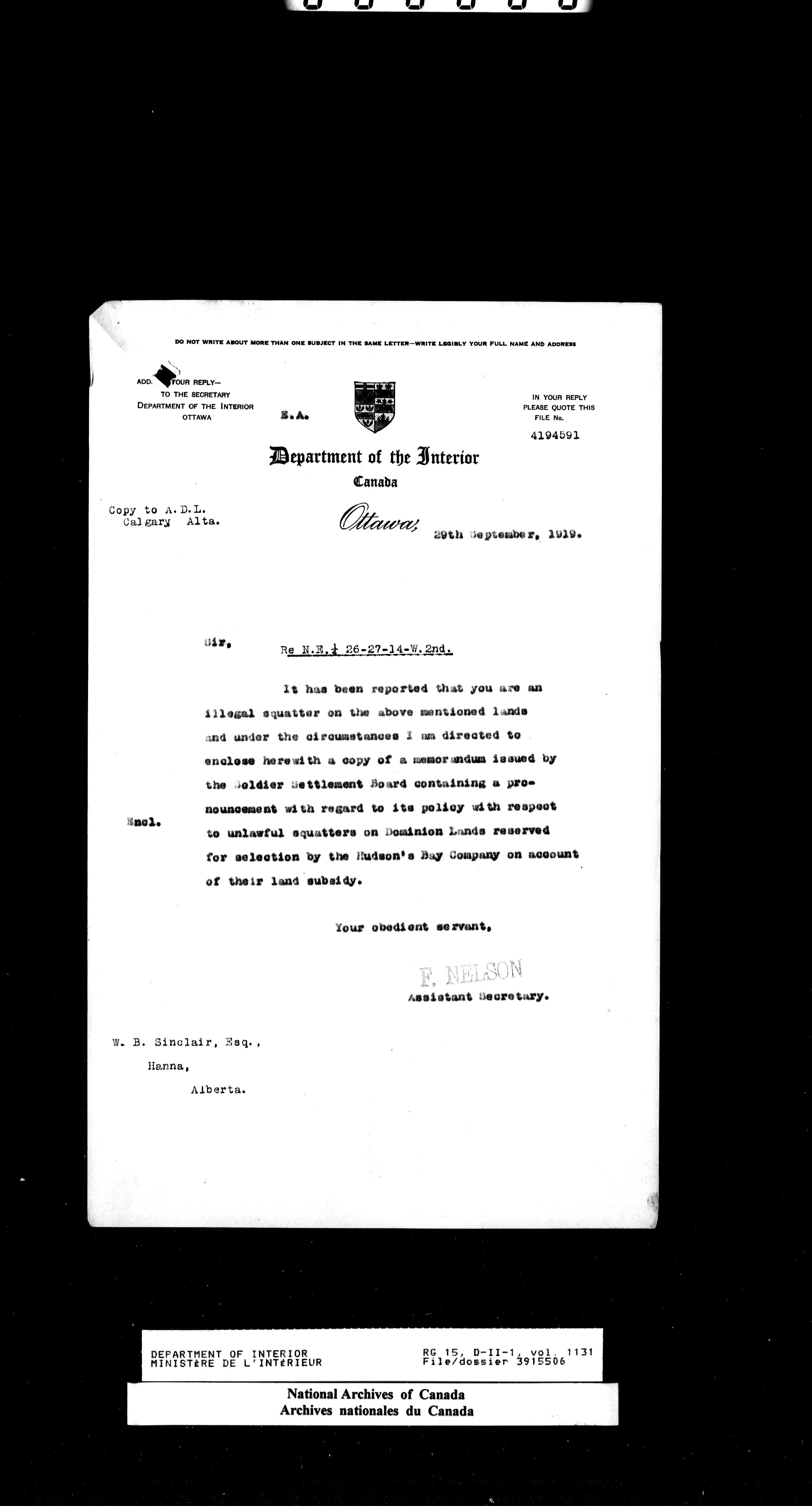 Central registry subject files created by the Dominion Lands Branch - 14692