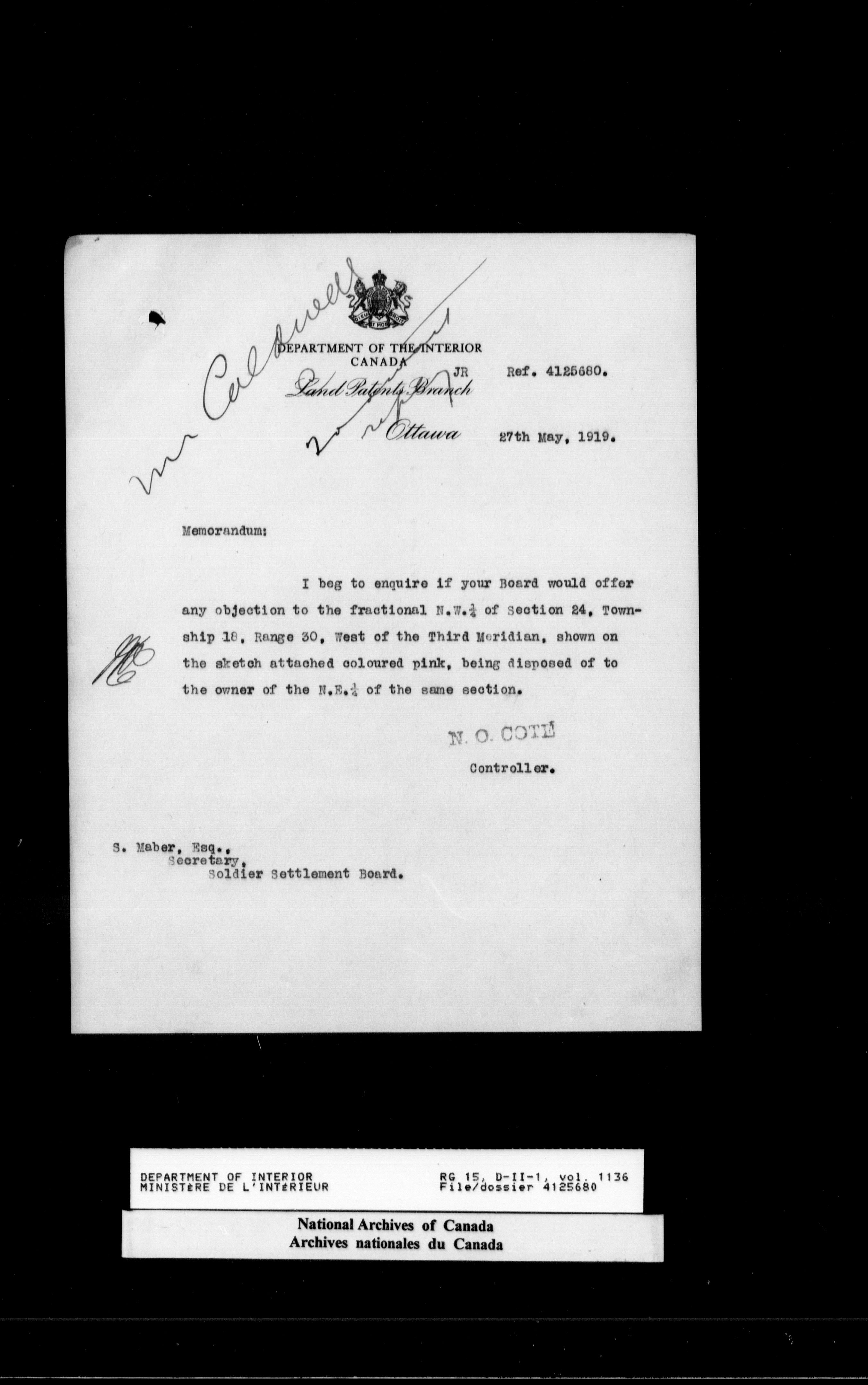Central registry subject files created by the Dominion Lands Branch - 14696