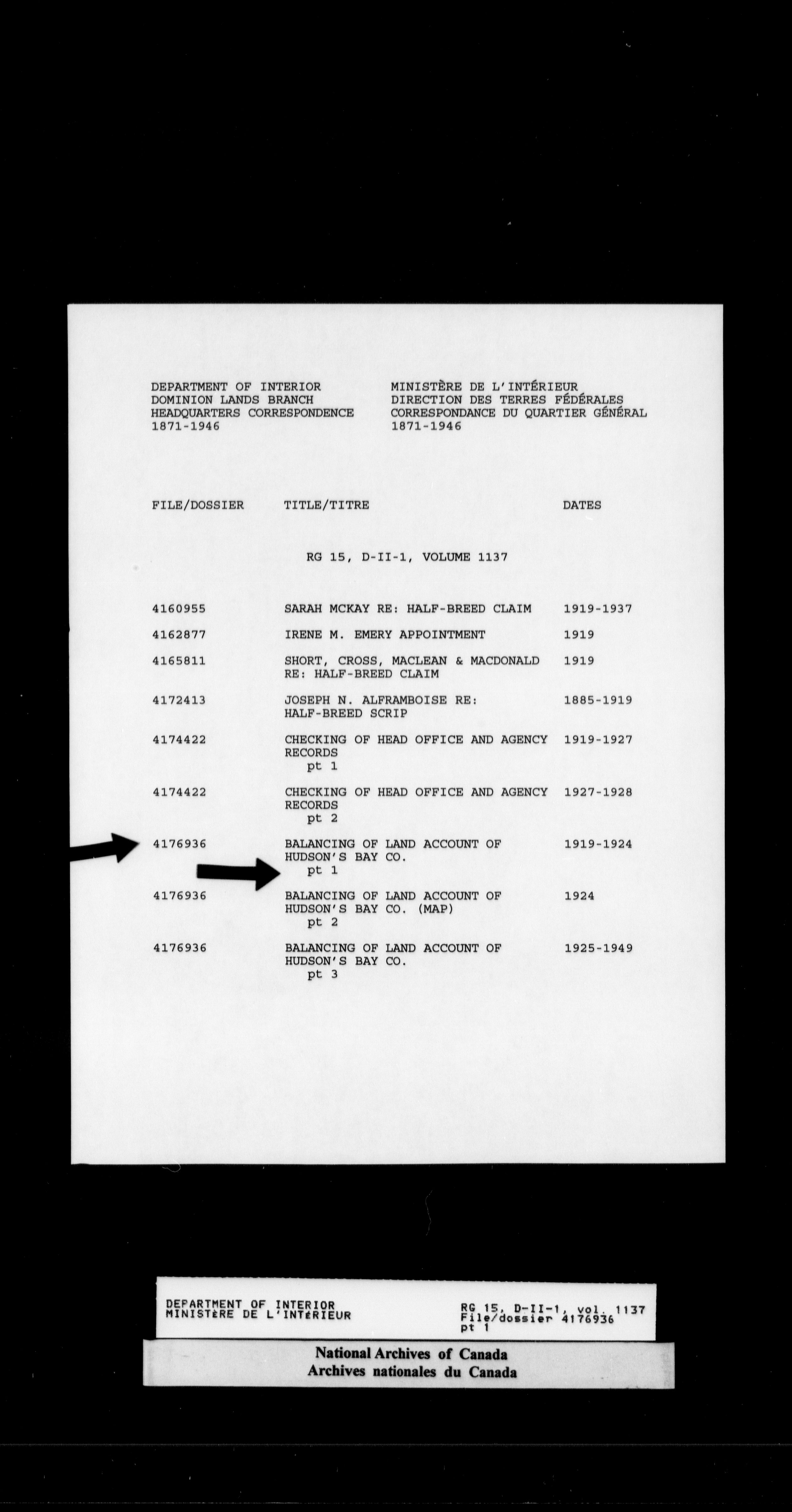 Central registry subject files created by the Dominion Lands Branch - 14697