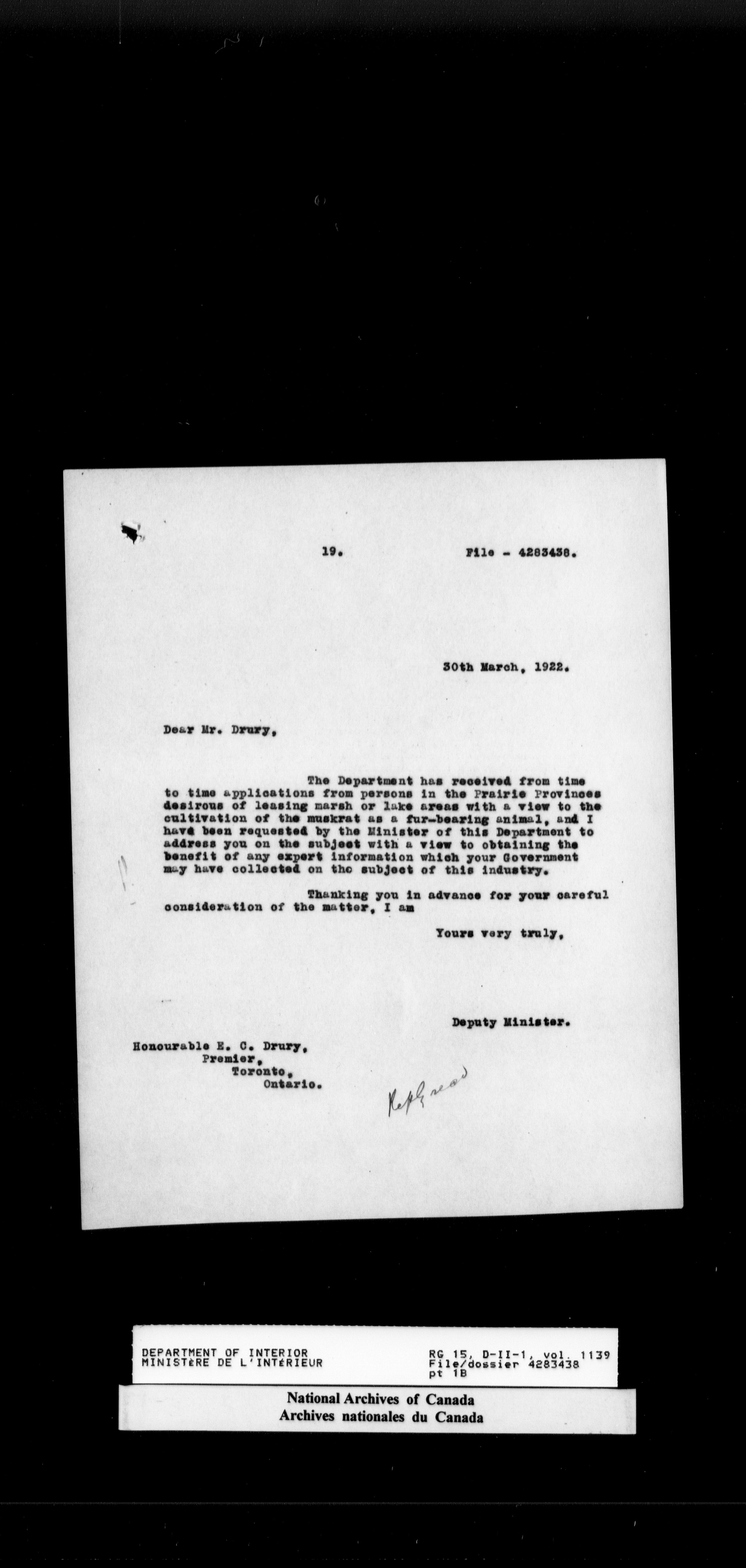 Central registry subject files created by the Dominion Lands Branch - 14698