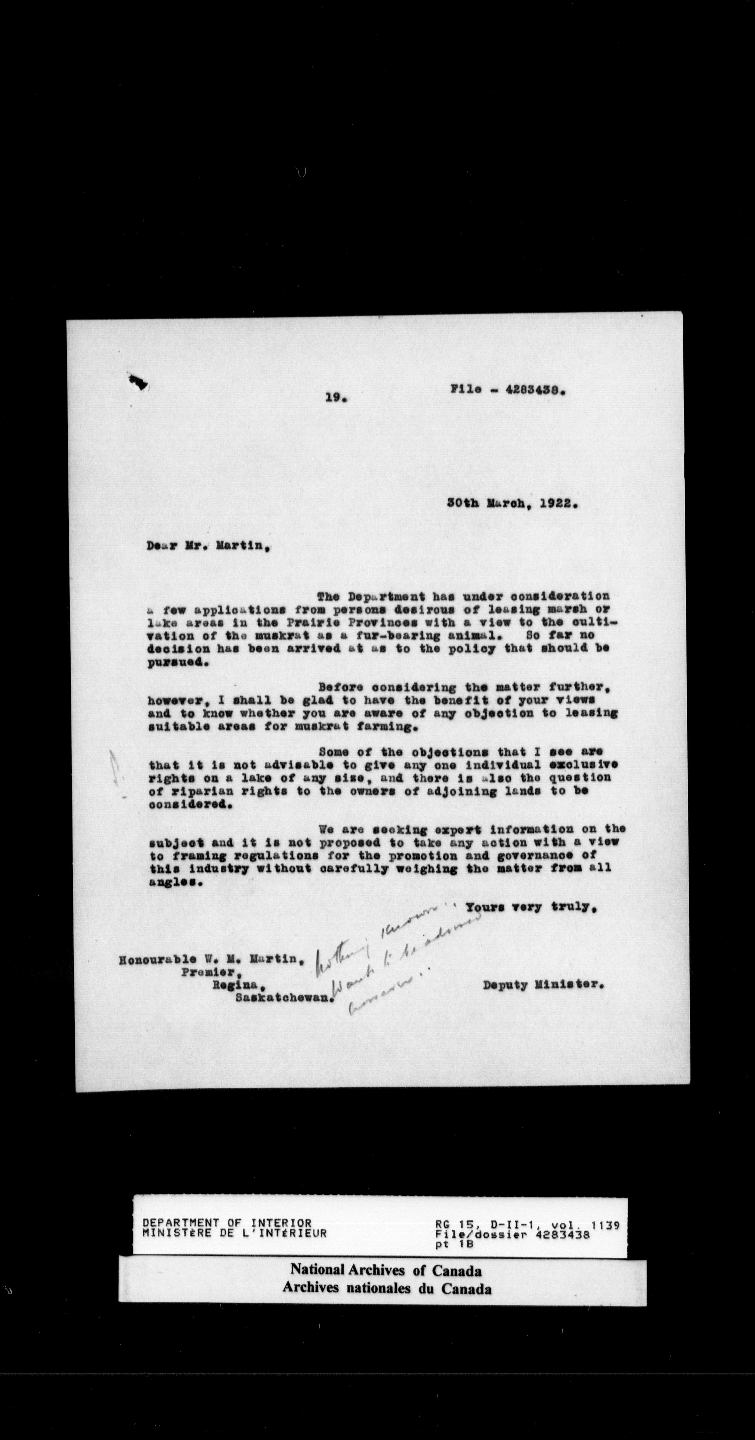 Central registry subject files created by the Dominion Lands Branch - 14698
