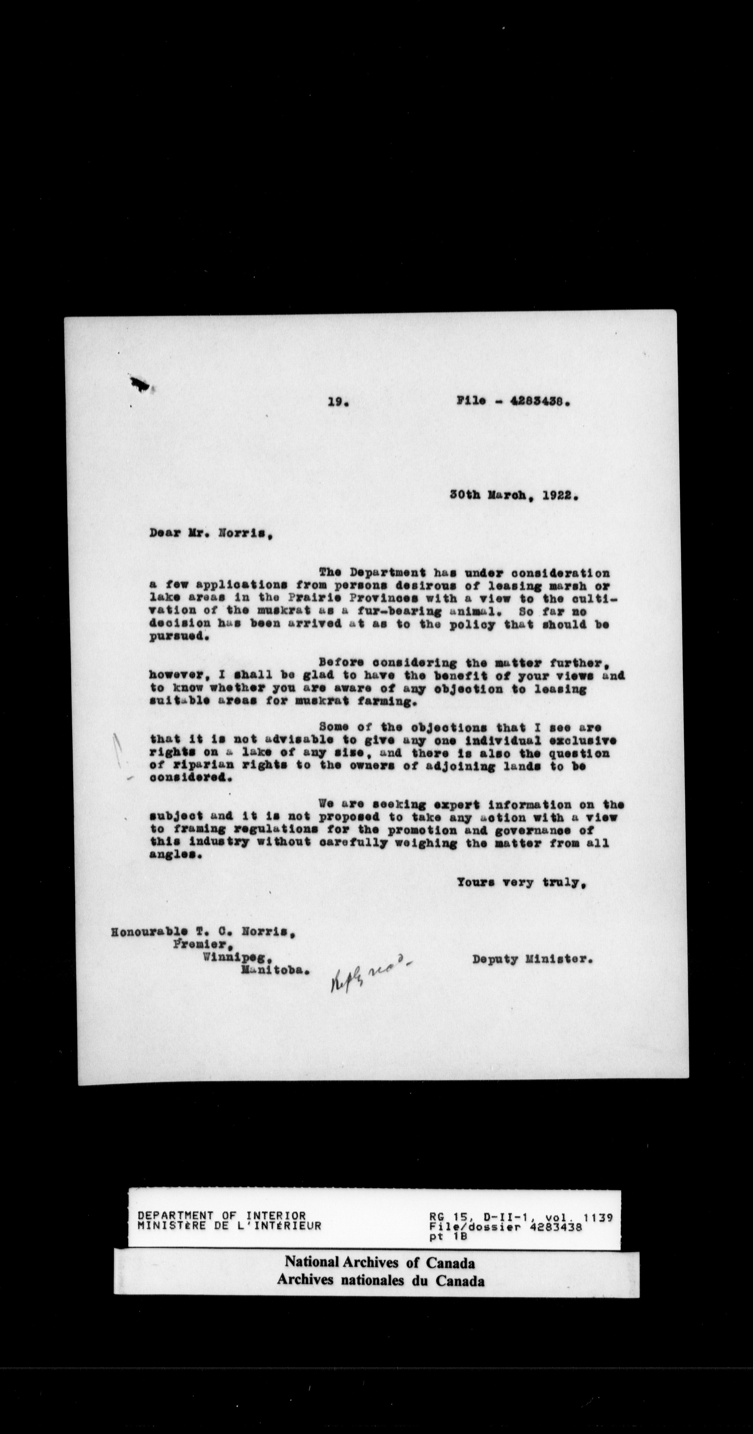 Central registry subject files created by the Dominion Lands Branch - 14698