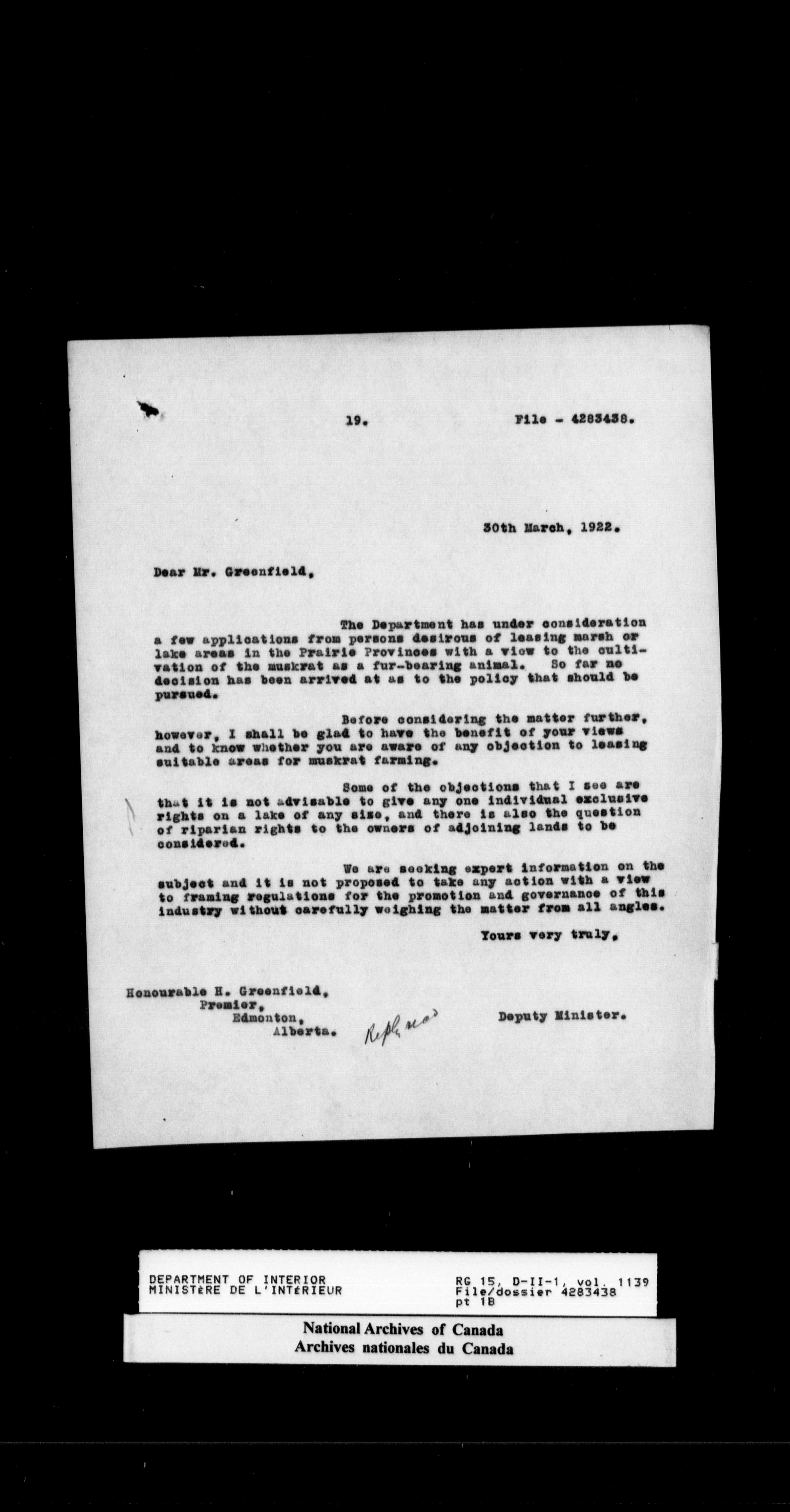 Central registry subject files created by the Dominion Lands Branch - 14698