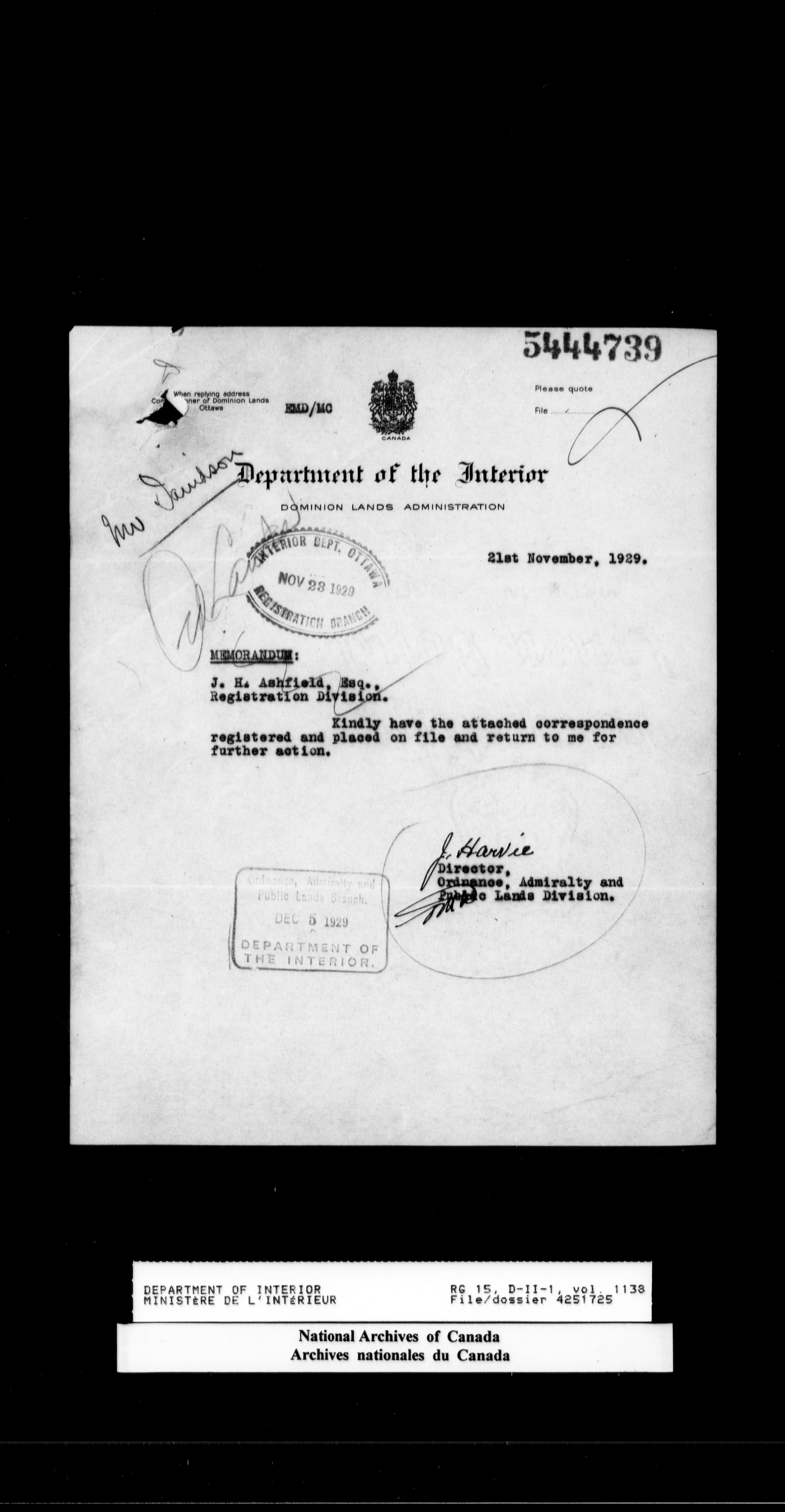Central registry subject files created by the Dominion Lands Branch - 14698