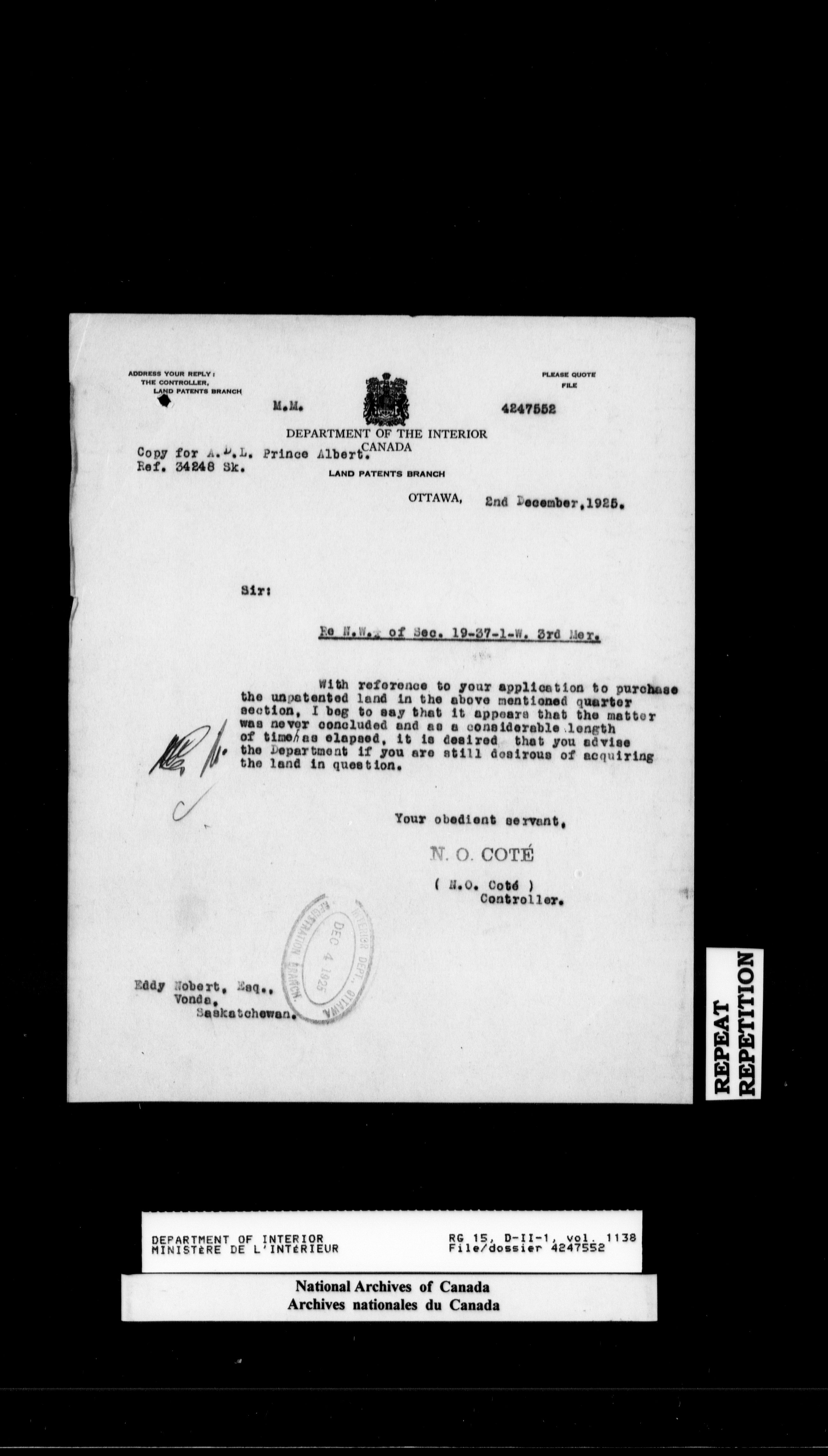 Central registry subject files created by the Dominion Lands Branch - 14698
