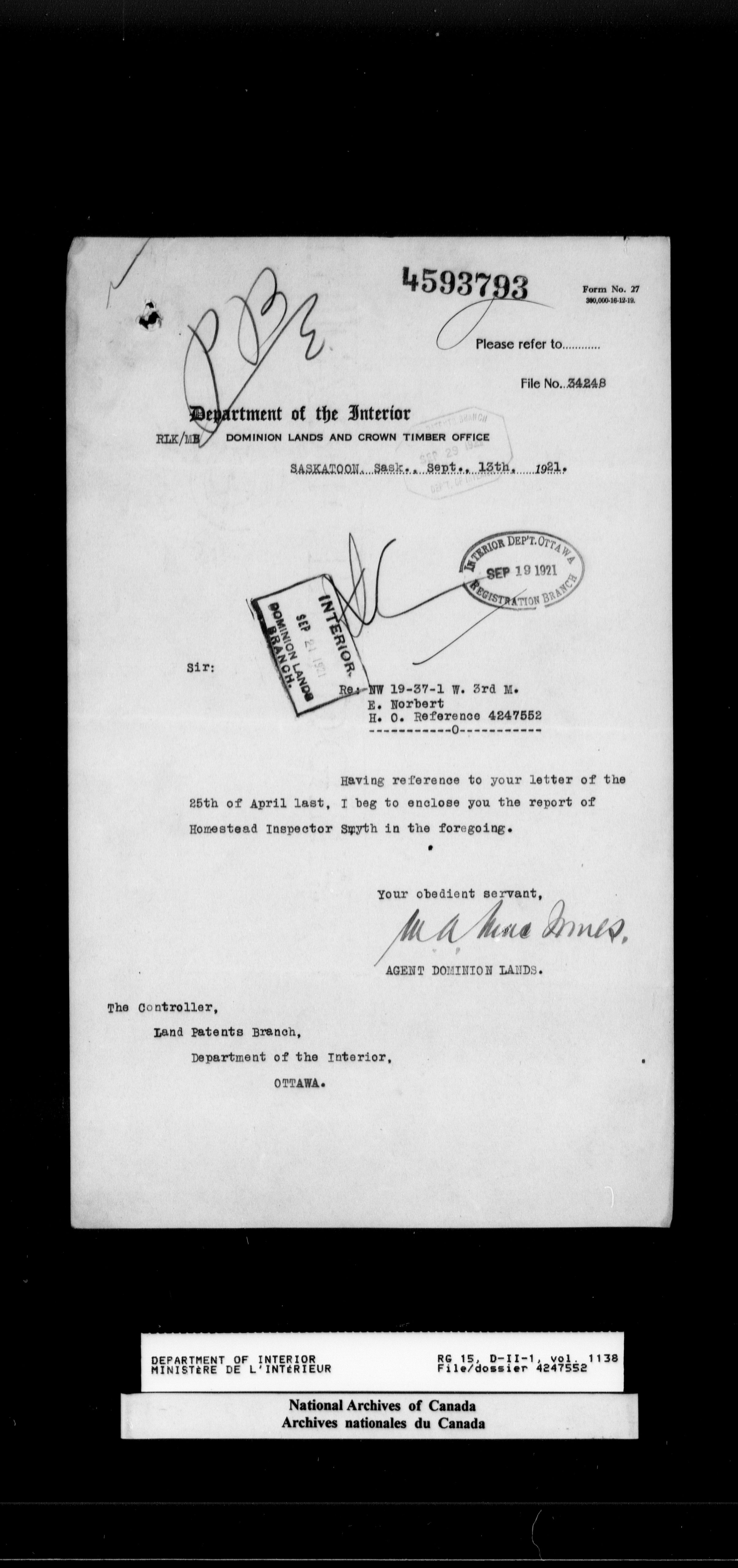 Central registry subject files created by the Dominion Lands Branch - 14698