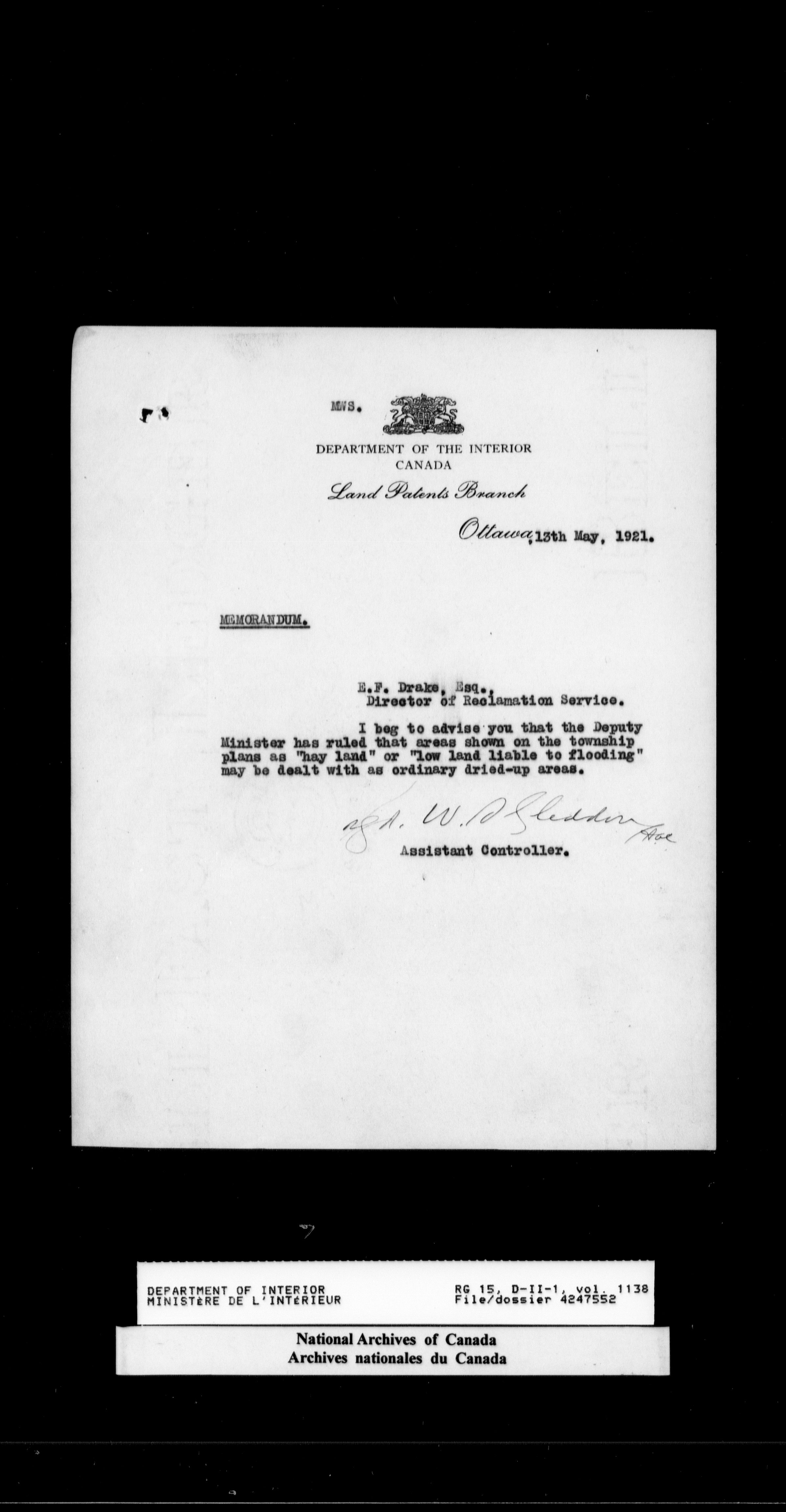 Central registry subject files created by the Dominion Lands Branch - 14698