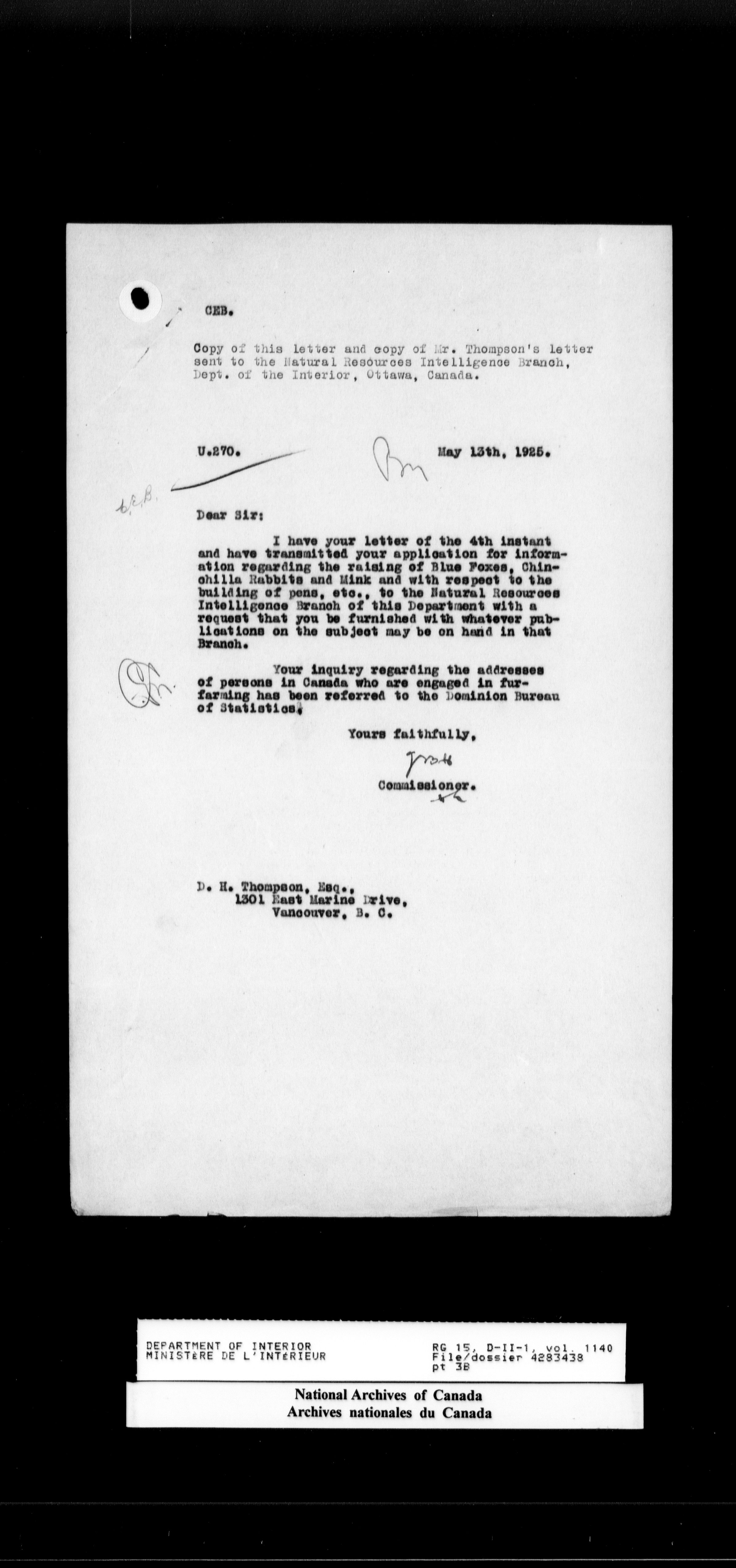 Central registry subject files created by the Dominion Lands Branch - 14699