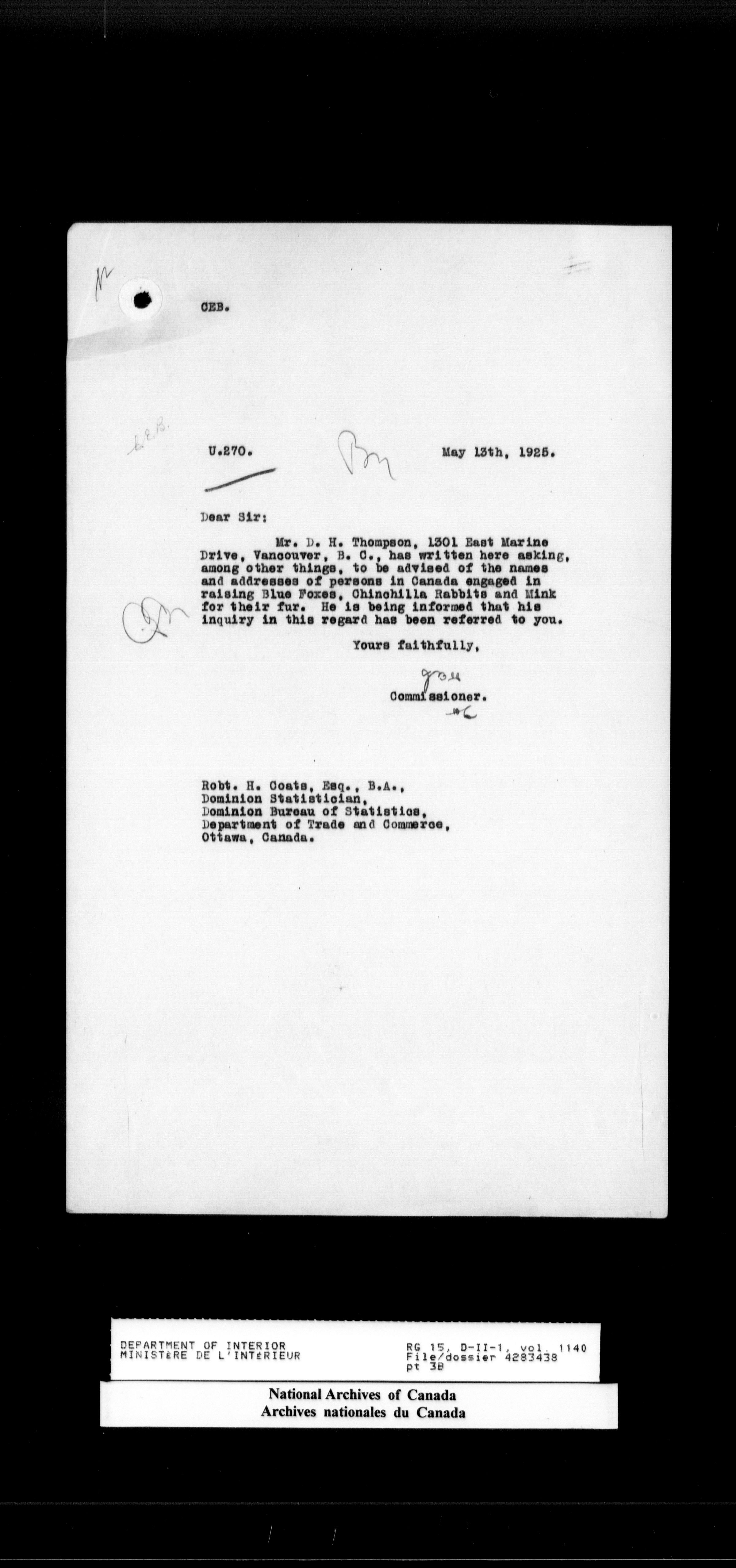 Central registry subject files created by the Dominion Lands Branch - 14699