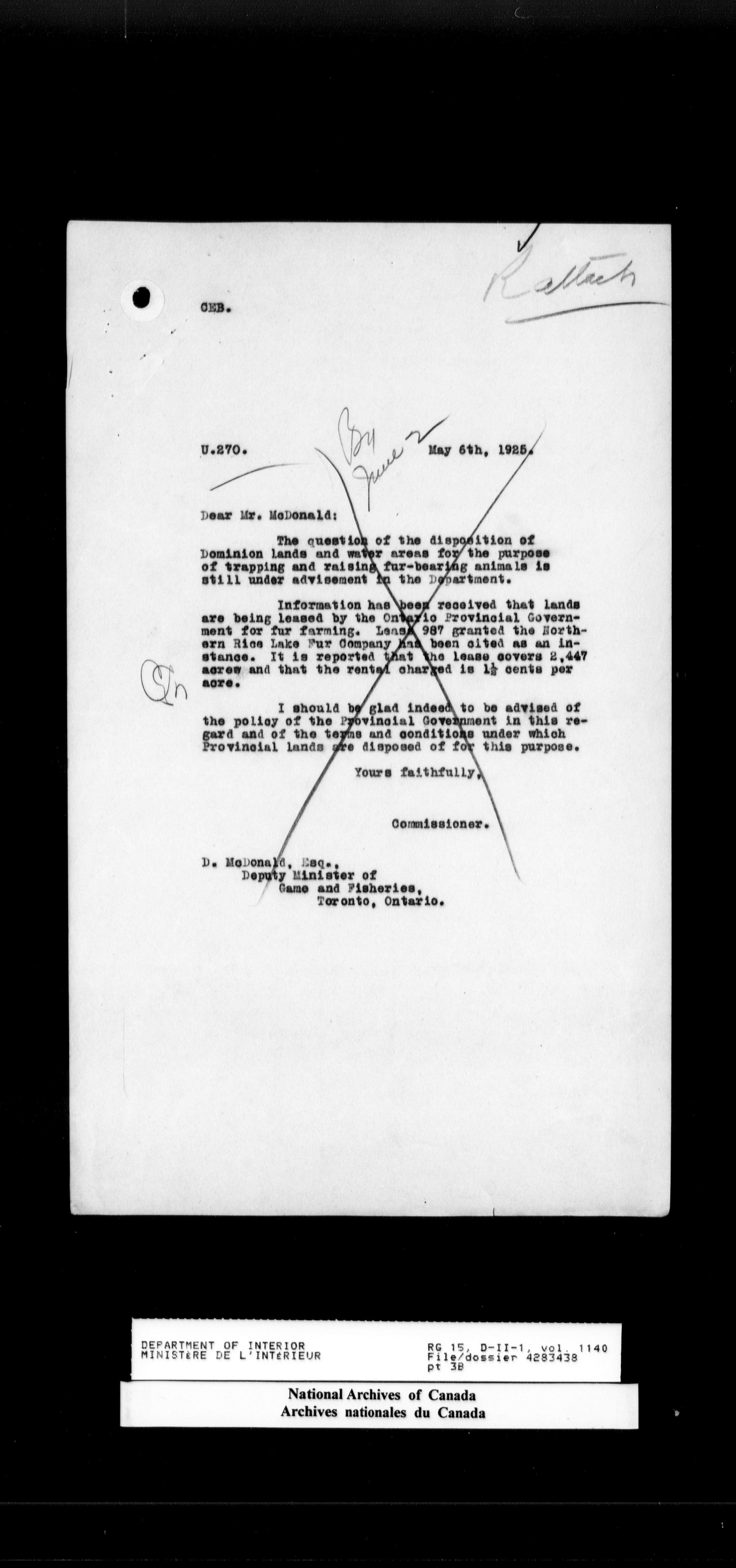 Central registry subject files created by the Dominion Lands Branch - 14699