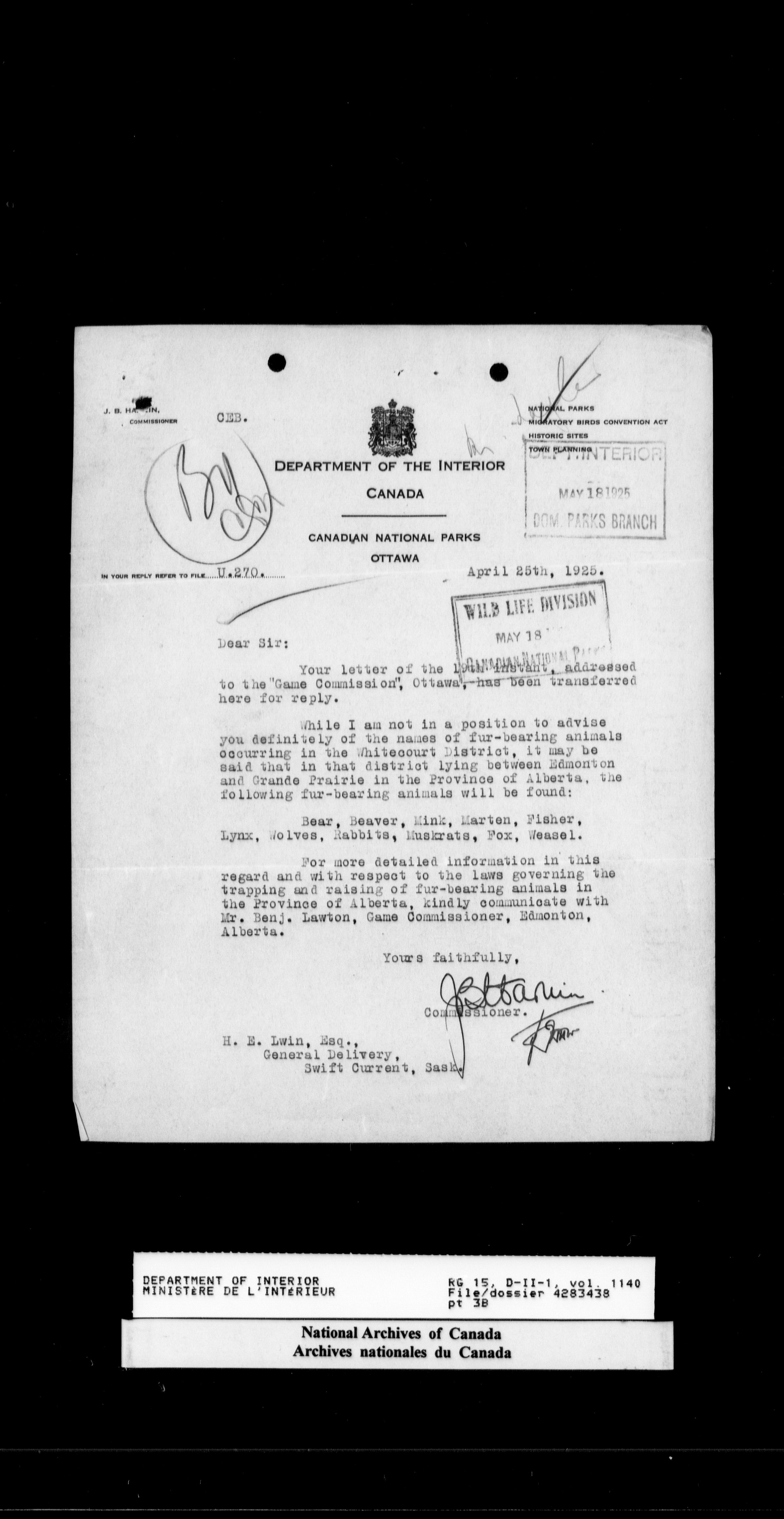 Central registry subject files created by the Dominion Lands Branch - 14699