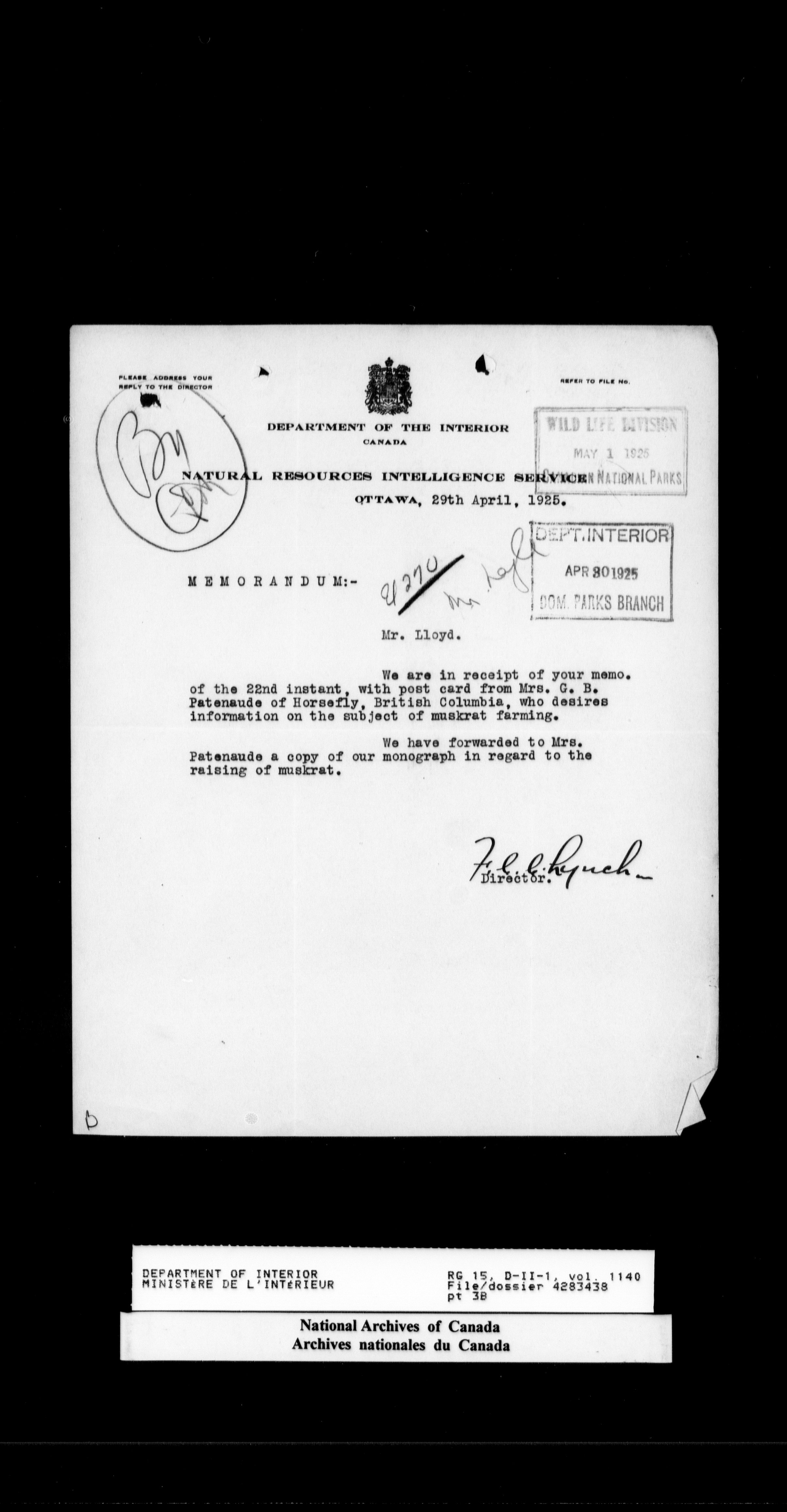 Central registry subject files created by the Dominion Lands Branch - 14699