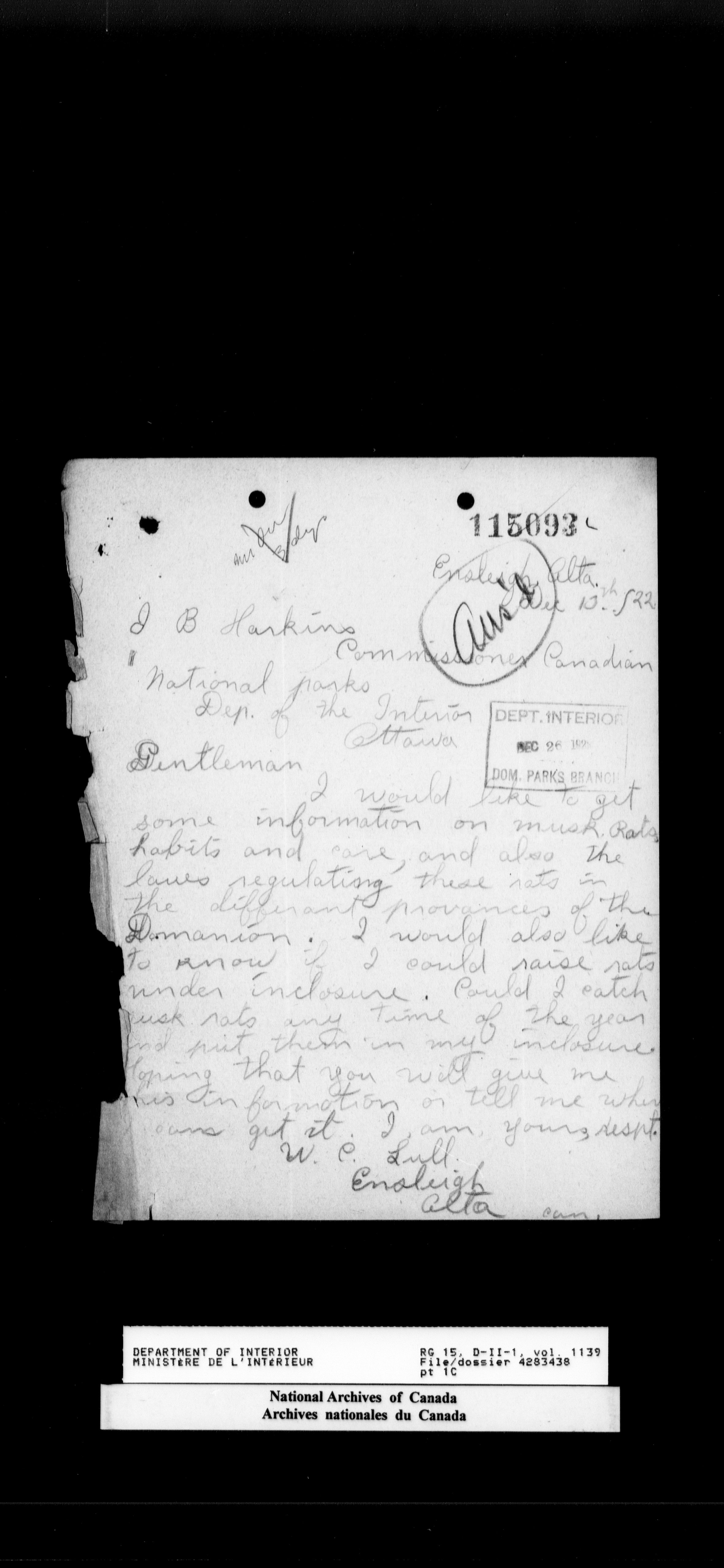 Central registry subject files created by the Dominion Lands Branch - 14699